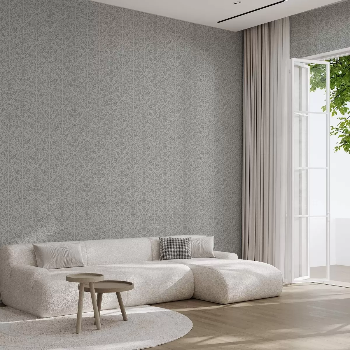 Tapeta Botanický damašek ve světle šedé barvě s jemným obrysem Nr. a00815v2