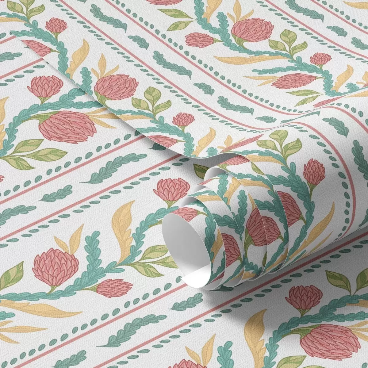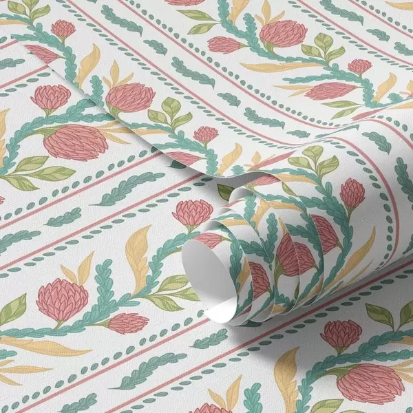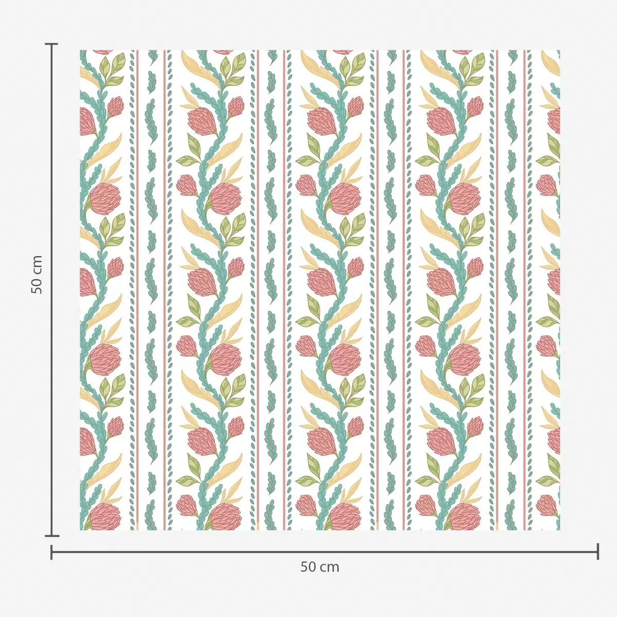 Tapeta Svislé pruhy s korálovými květy a tyrkysovými listy Nr. a00816