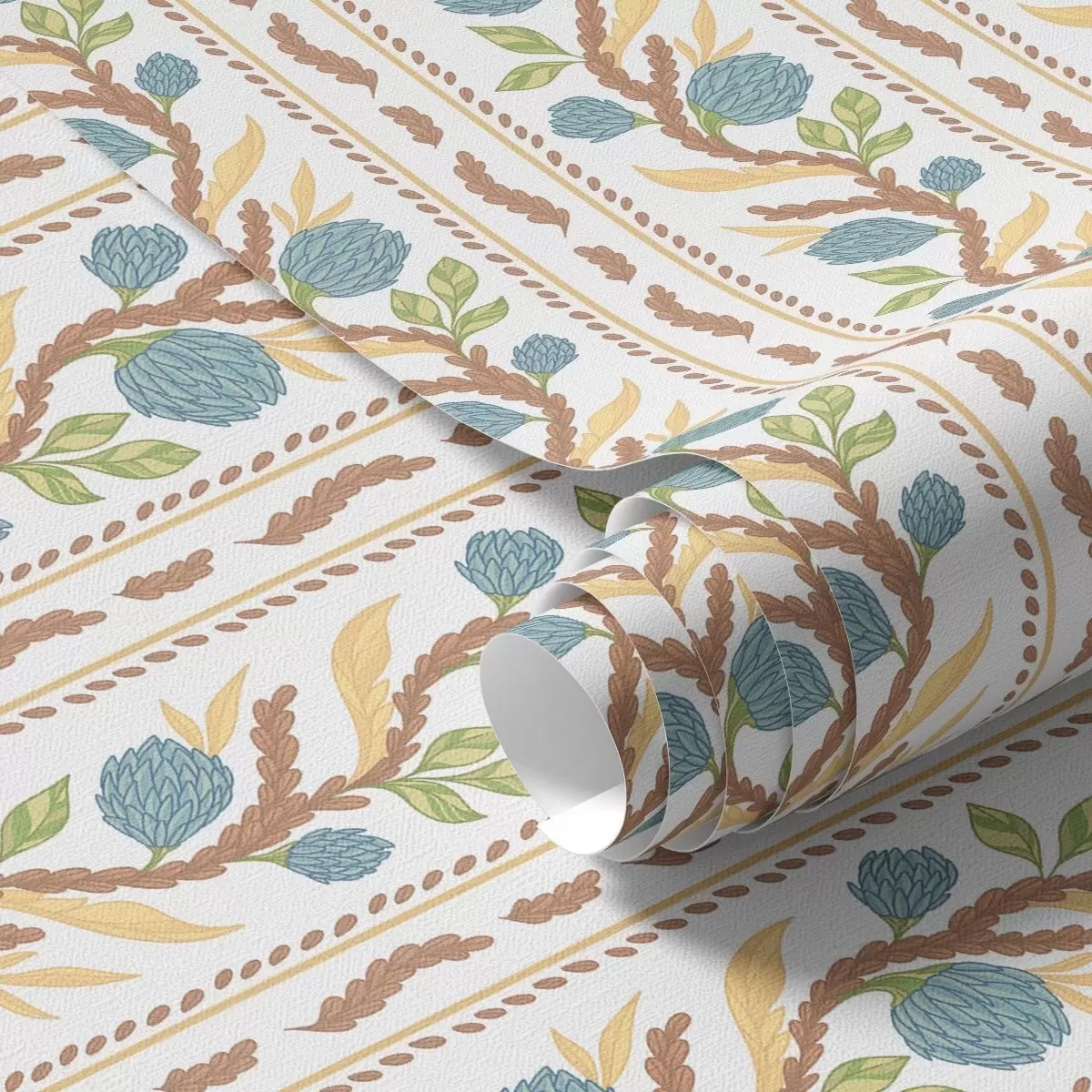 Tapeta Vertikální pruhy s modrými květy Nr. a00816v2