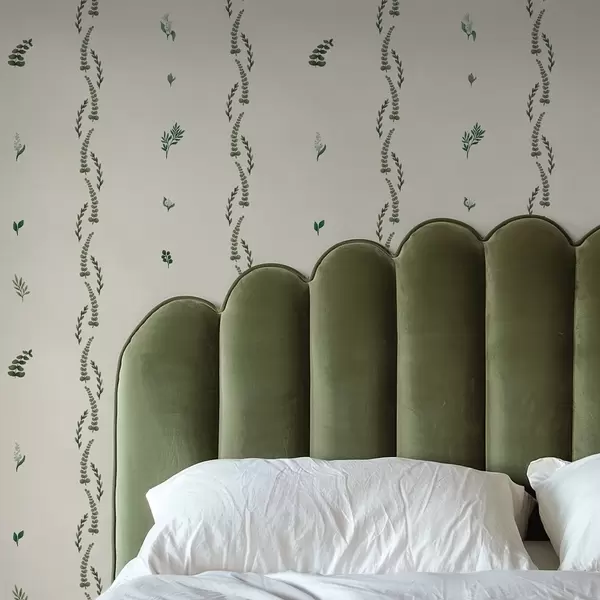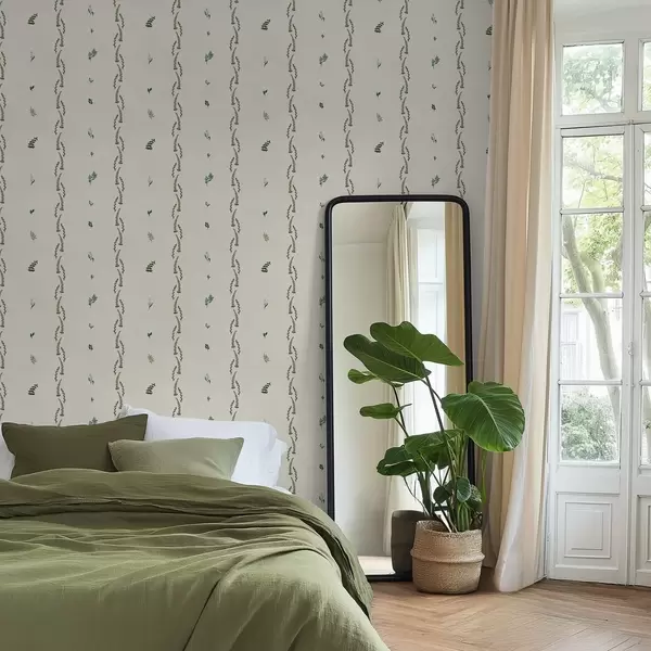 Tapeta Řídké zelené výhonky ve vertikálním rytmu, krémový podklad Nr. a00818