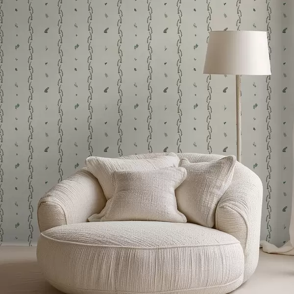 Tapeta Řídké zelené výhonky ve vertikálním rytmu, krémový podklad Nr. a00818
