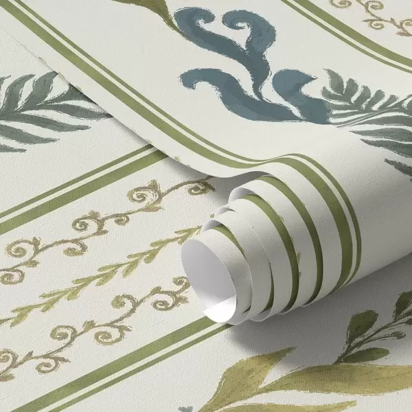 Tapety Pruhy se spirálovým ornamentem a velkými větvemi v zelených barvách a00823