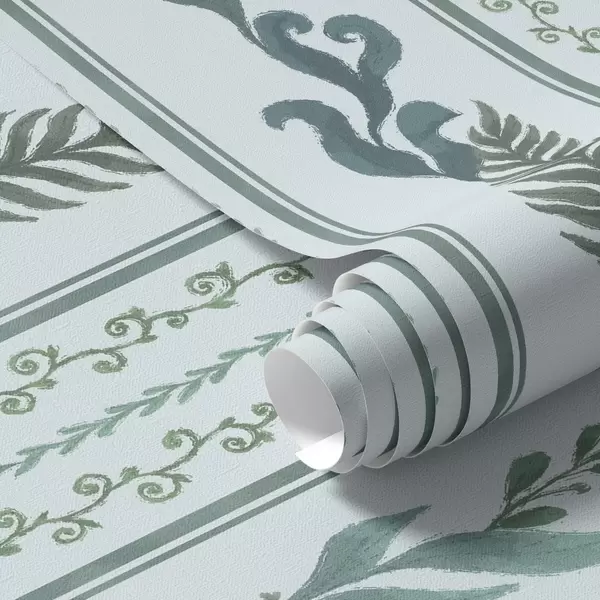 Tapeta Pruhy s větvičkami a kudrlinkami na chladné světle modré barvě Nr. a00823v1