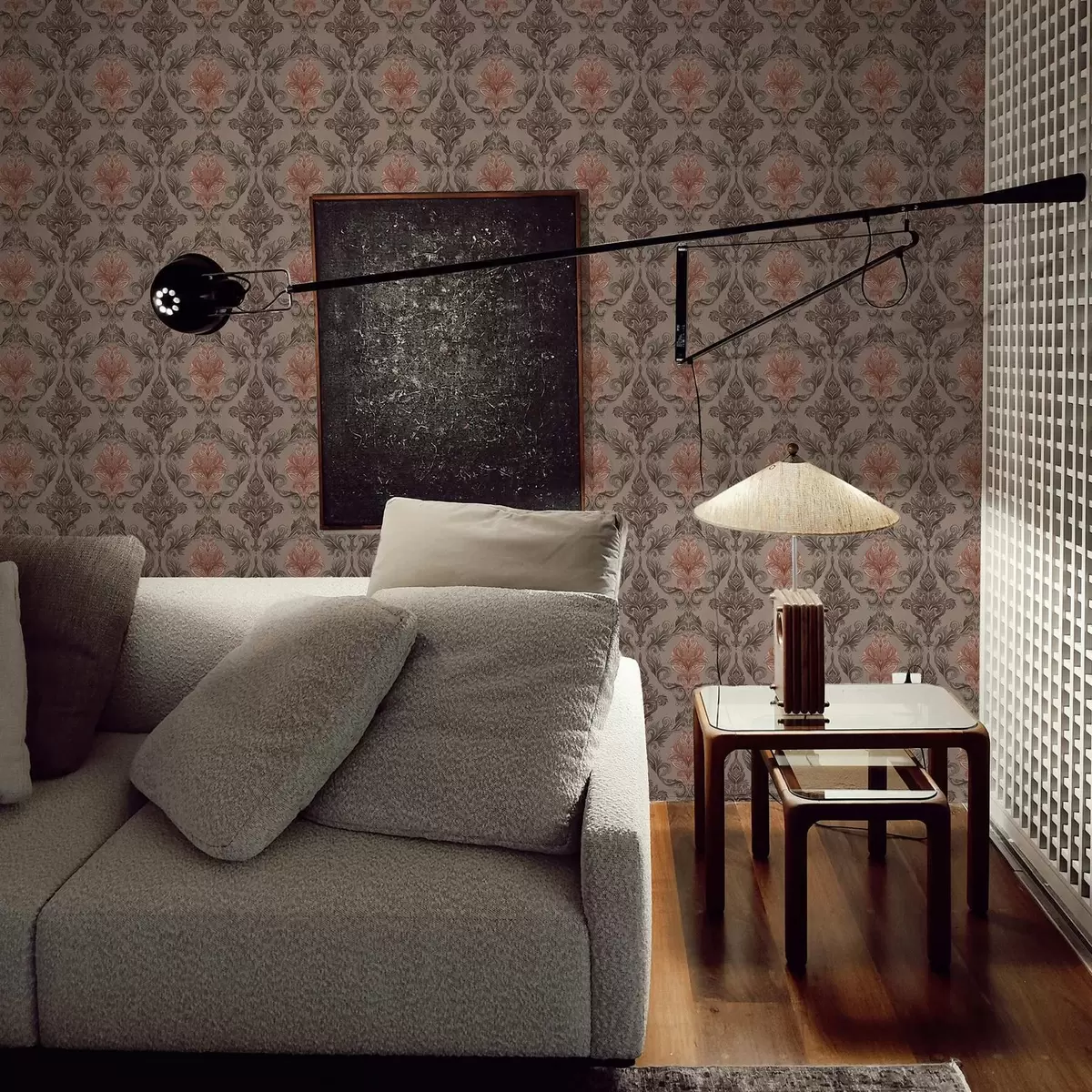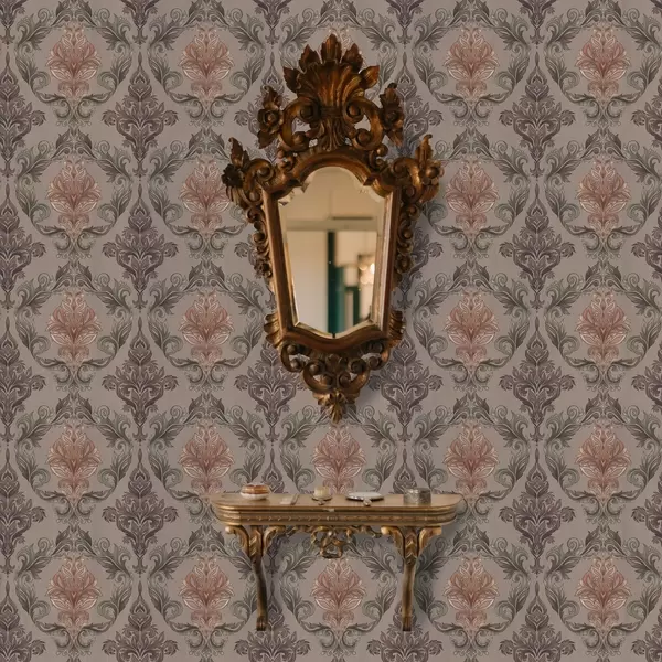 Tapeta Damašek v hnědé a terakotové barevné paletě, teplé šedé pozadí Nr. a00828v2