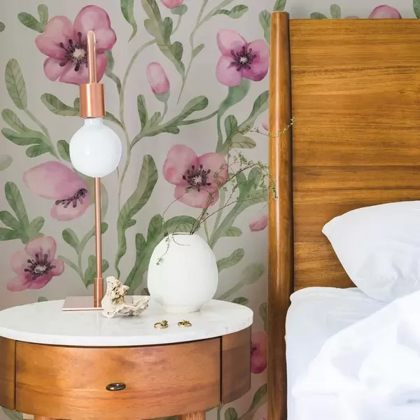 Tapeta Jemné růžové máky s listy v akvarelové technice Nr. a00830