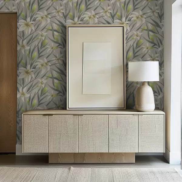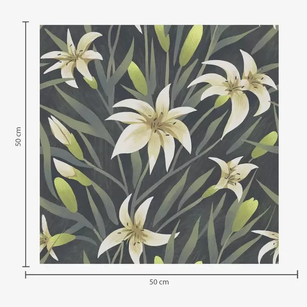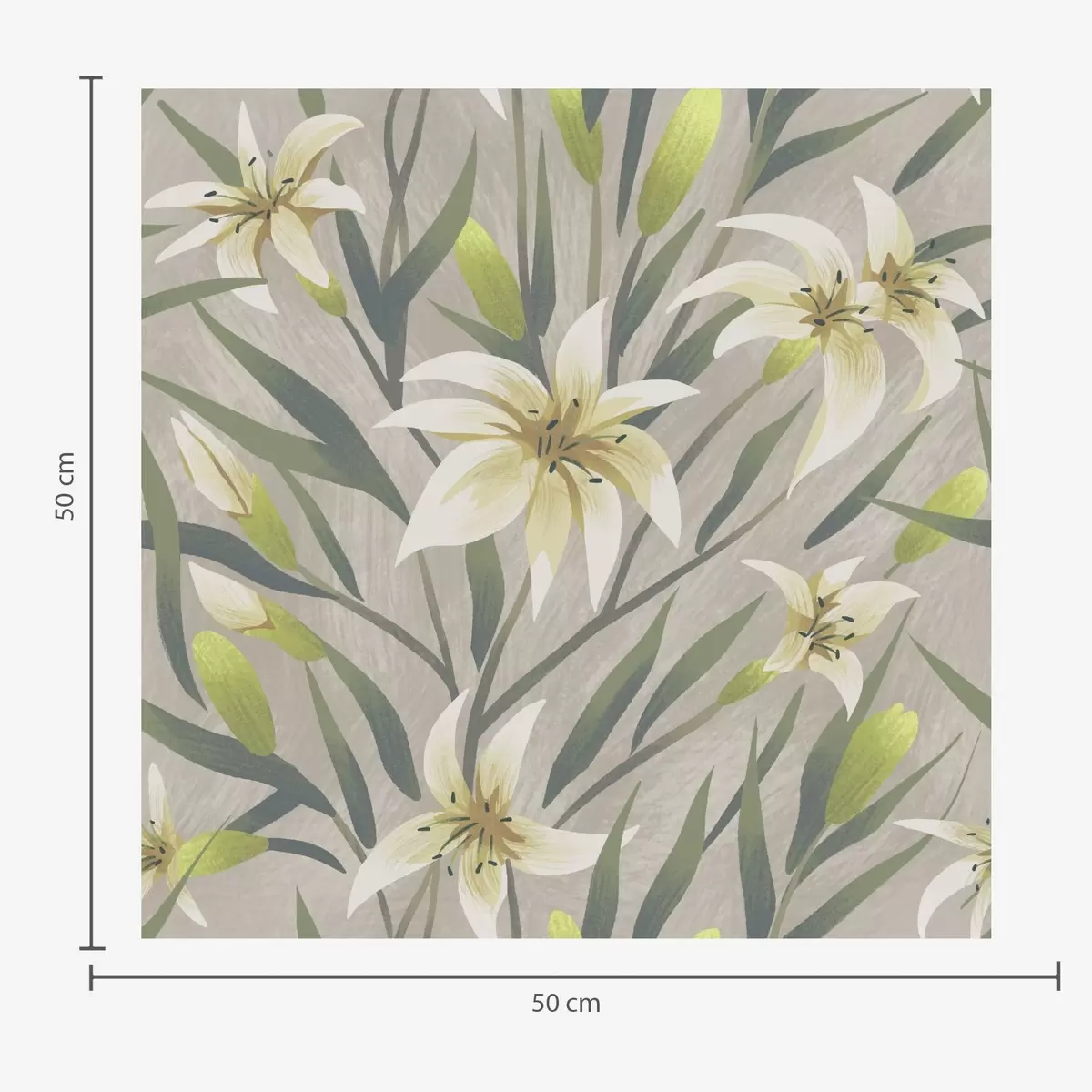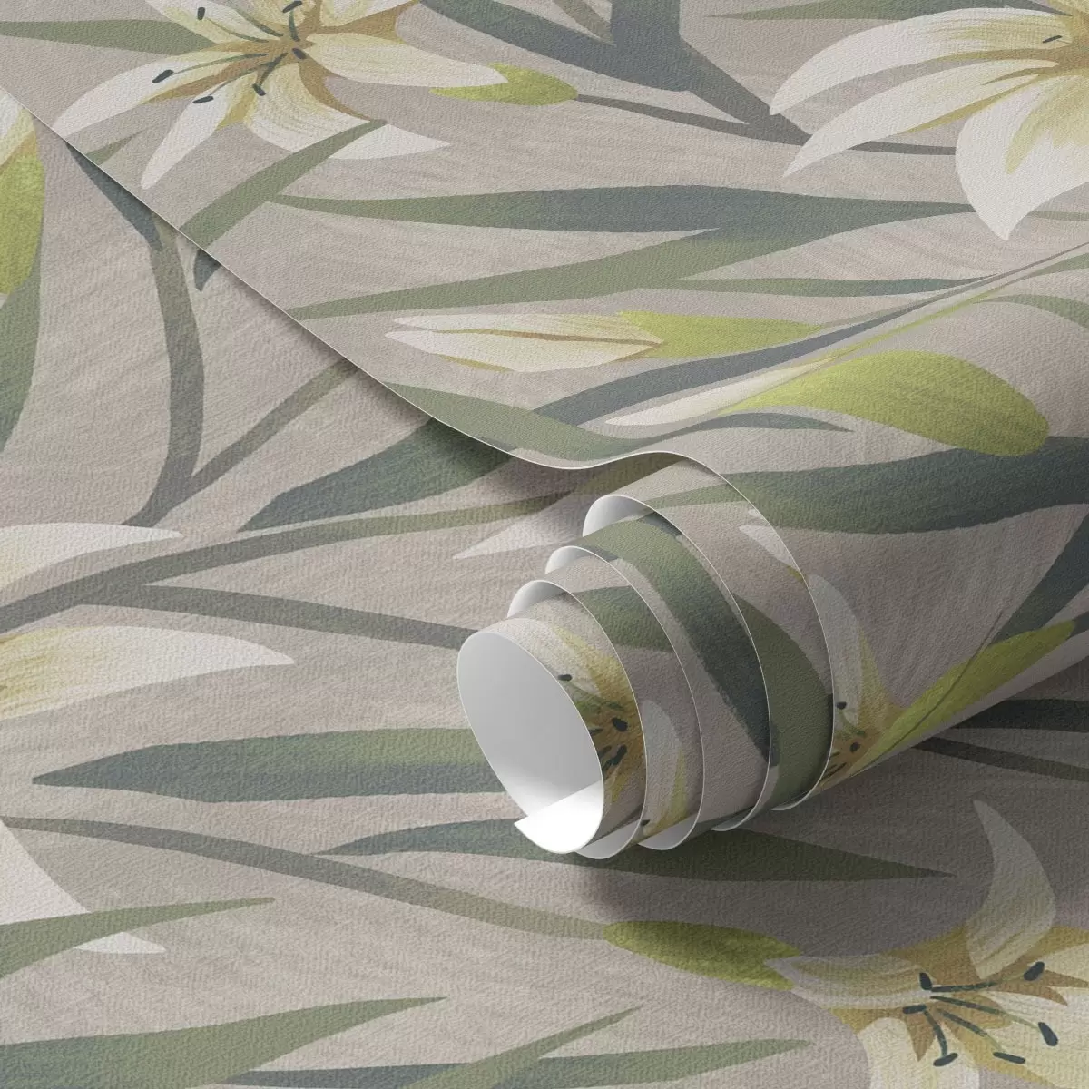 Tapeta Krémové lilie s listy na šedobéžovém pozadí Nr. a00837