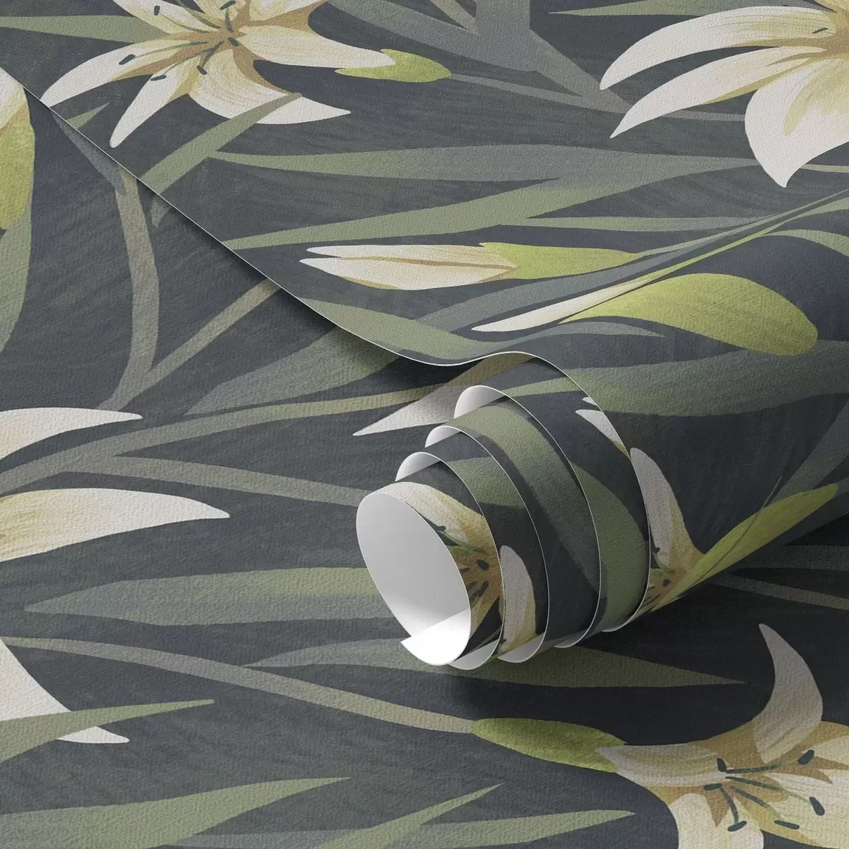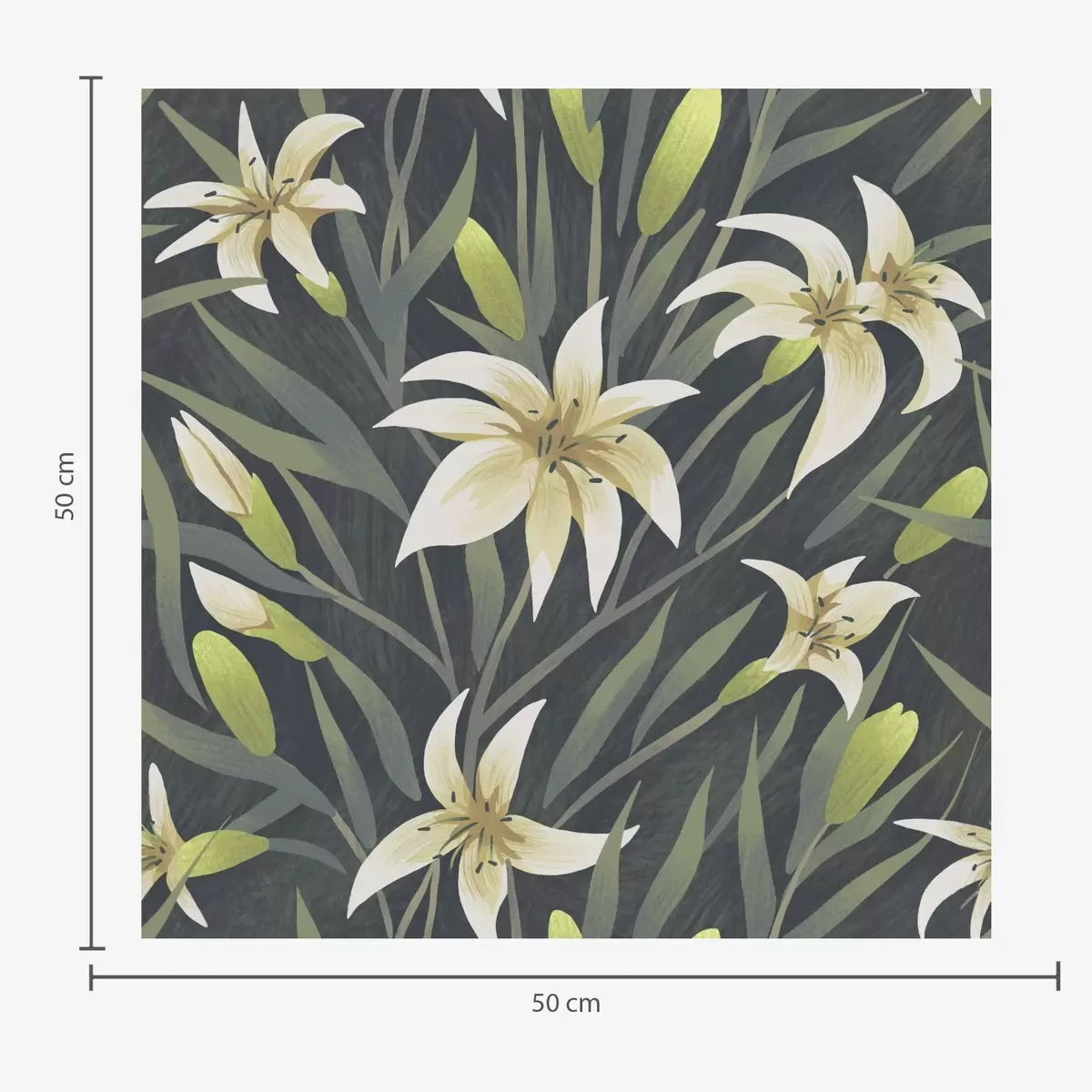 Tapeta Krémové lilie s listy na tmavém pozadí Nr. a00837v1