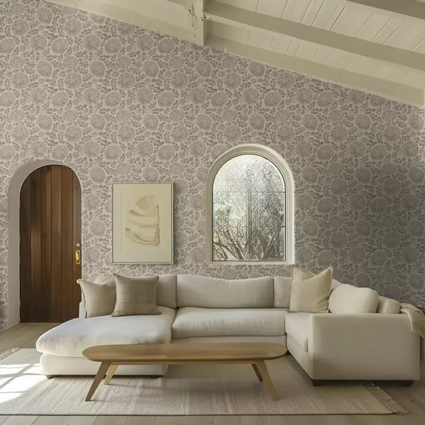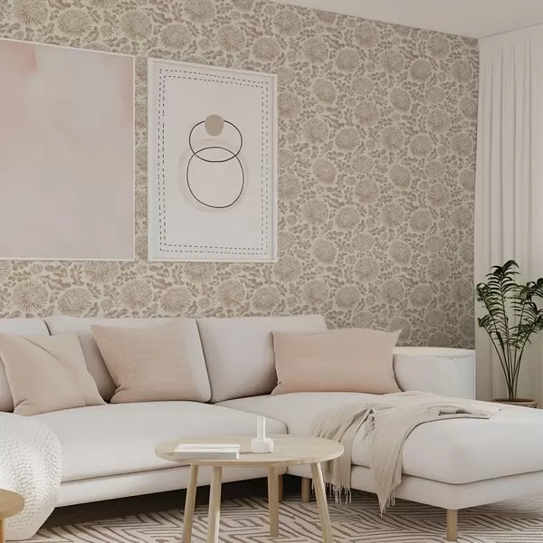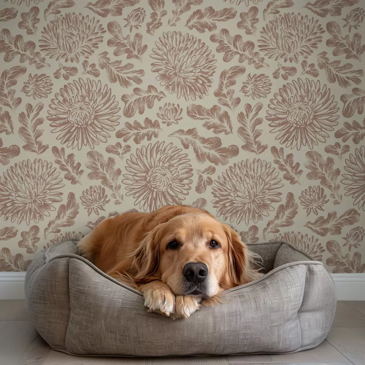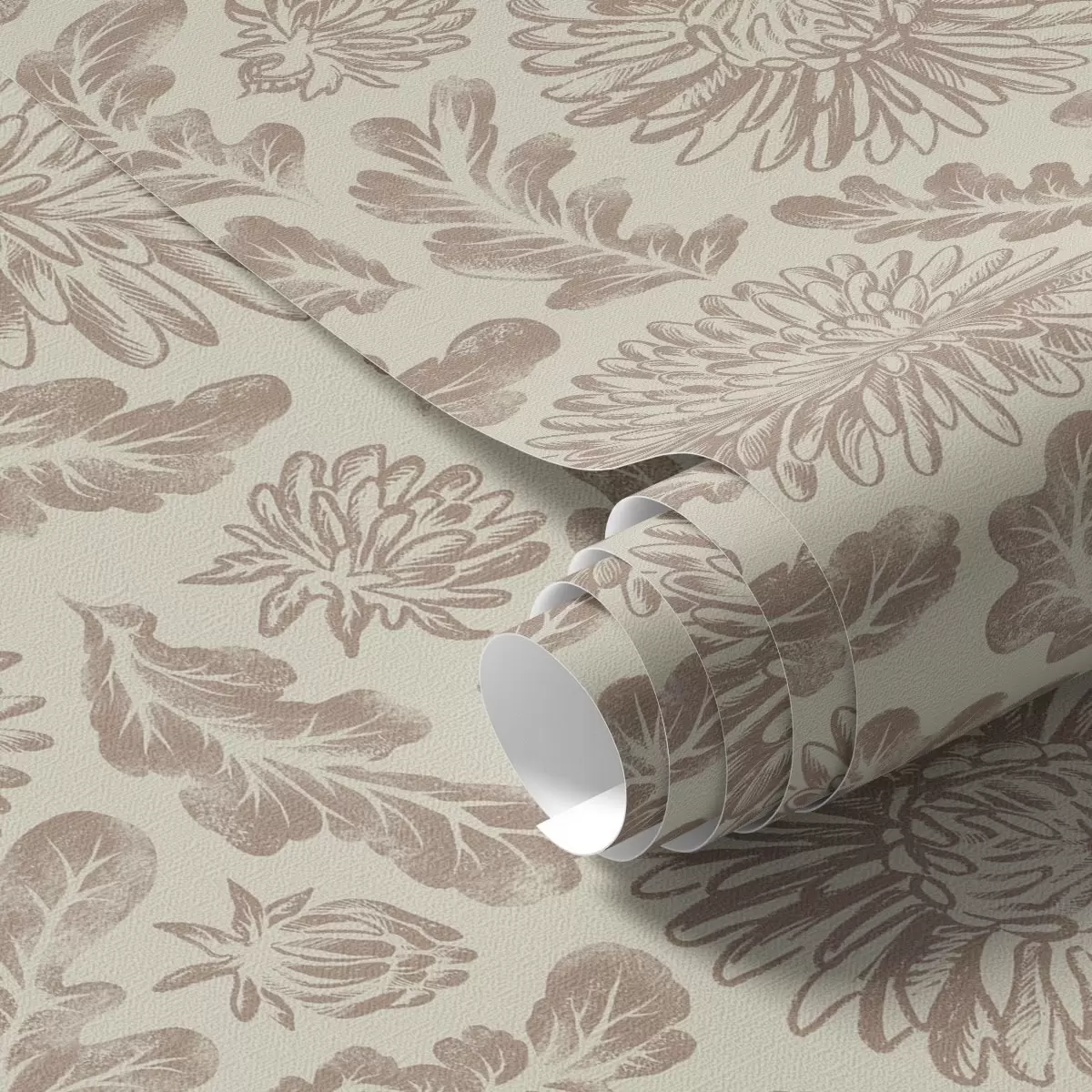 Tapeta Chryzantémy a dubové listy v jemné béžově hnědé barvě Nr. a00840
