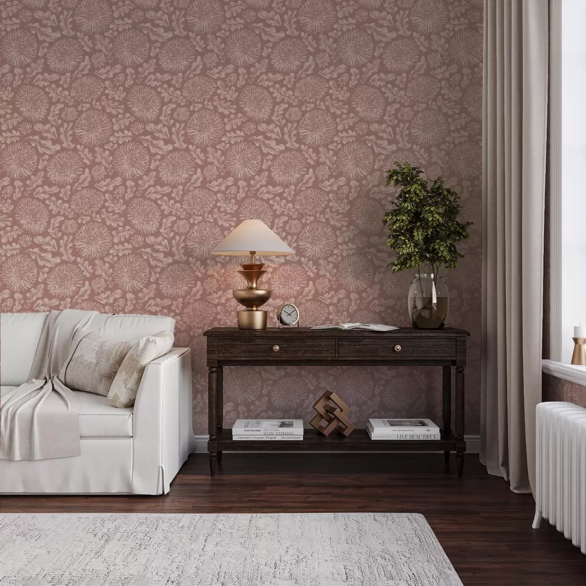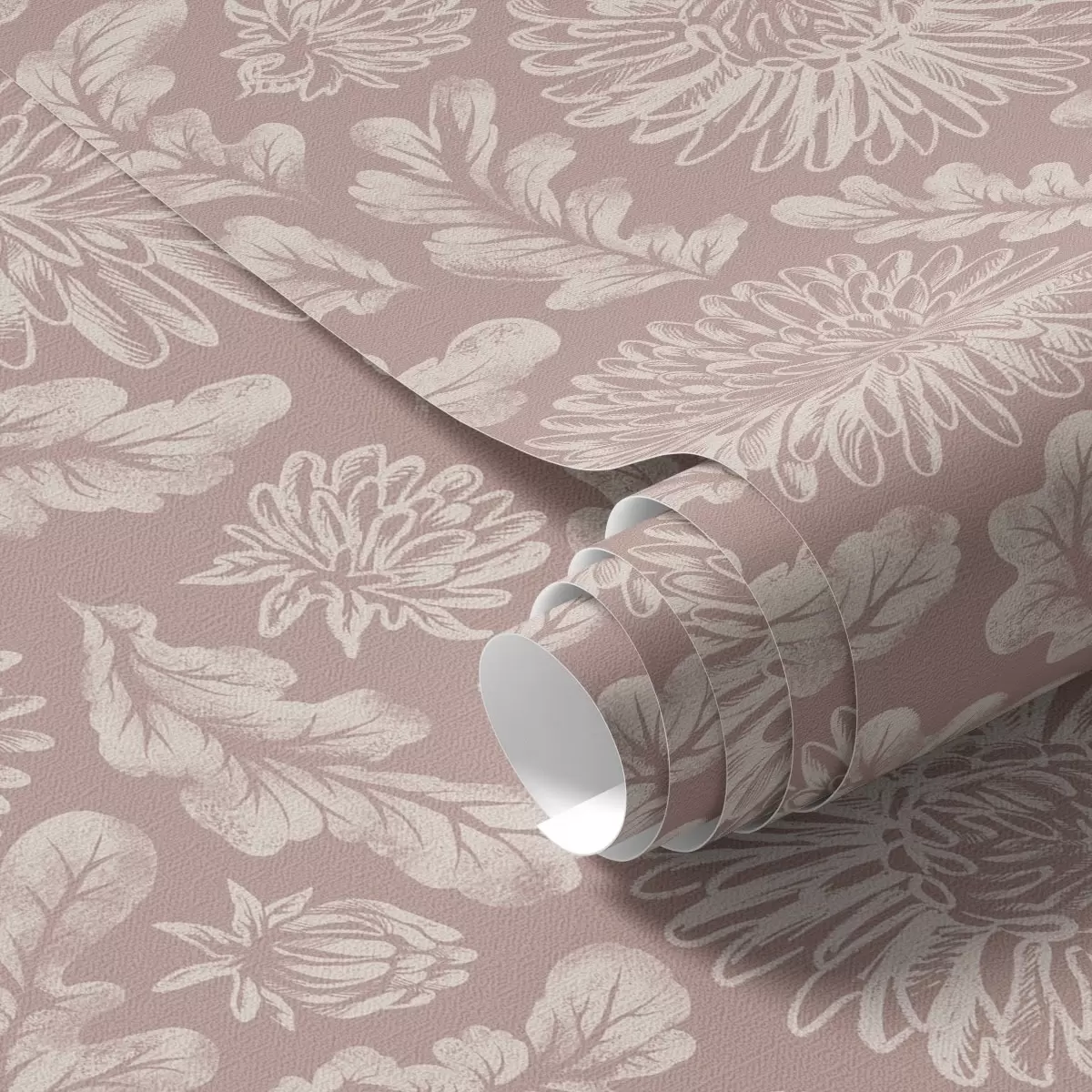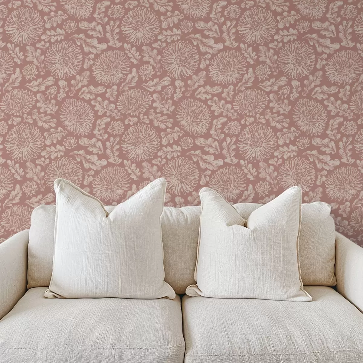 Tapeta Krémové chryzantémy na starorůžovém podkladu Nr. a00840v2