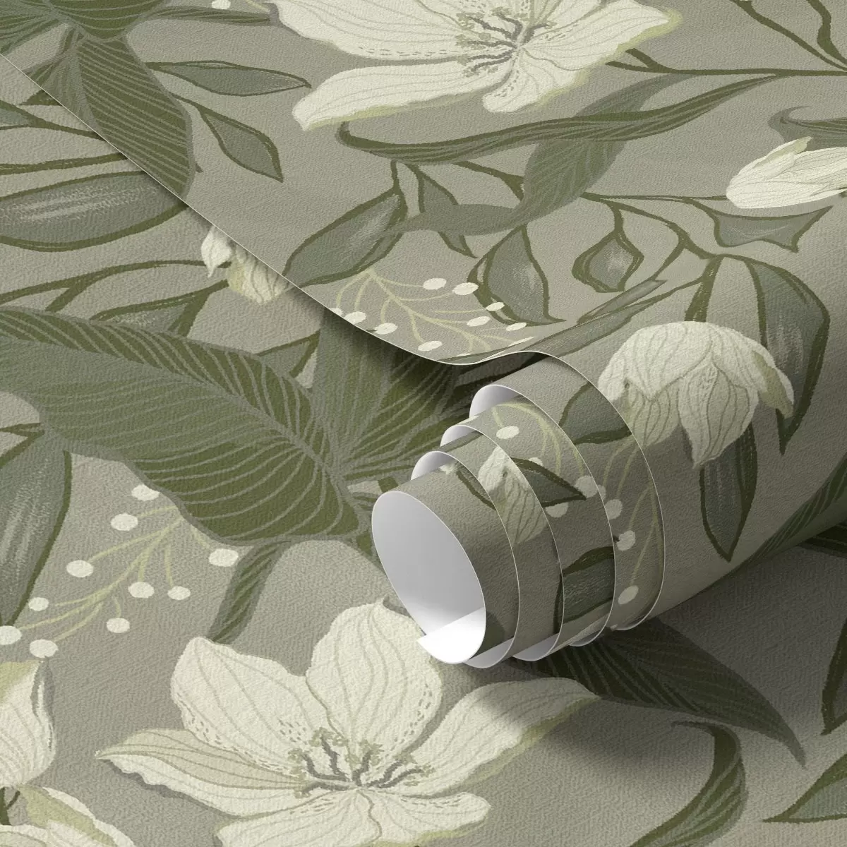 Tapeta Bledé lilie a listí na šedozeleném pozadí Nr. a00854