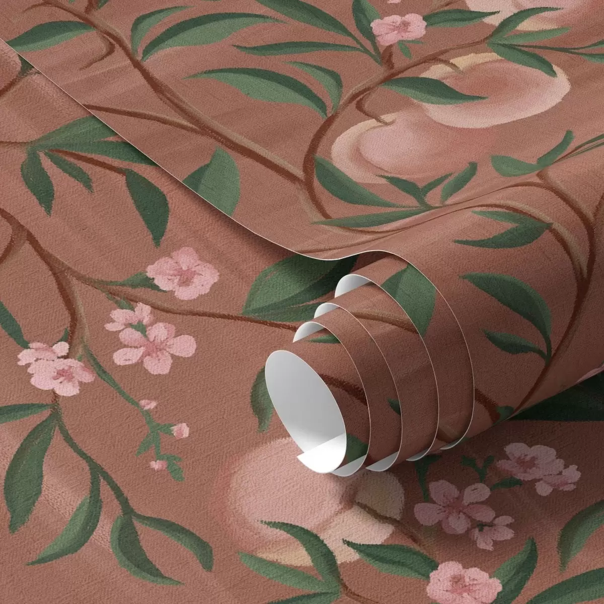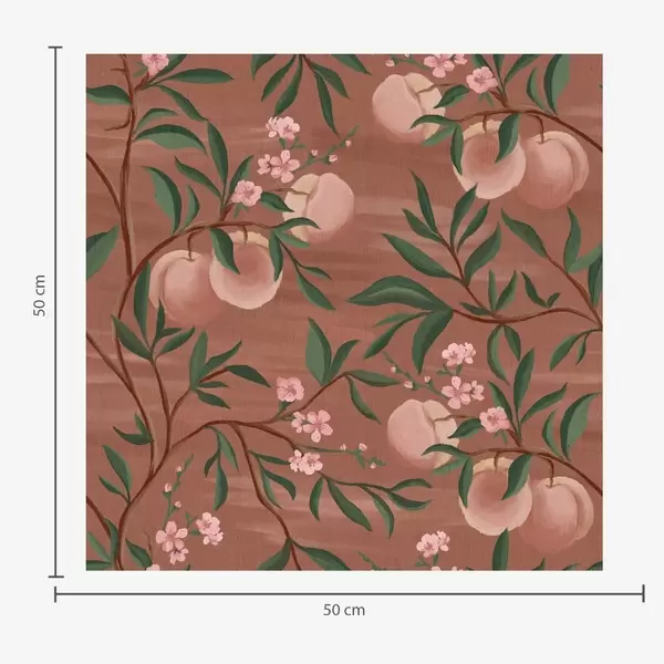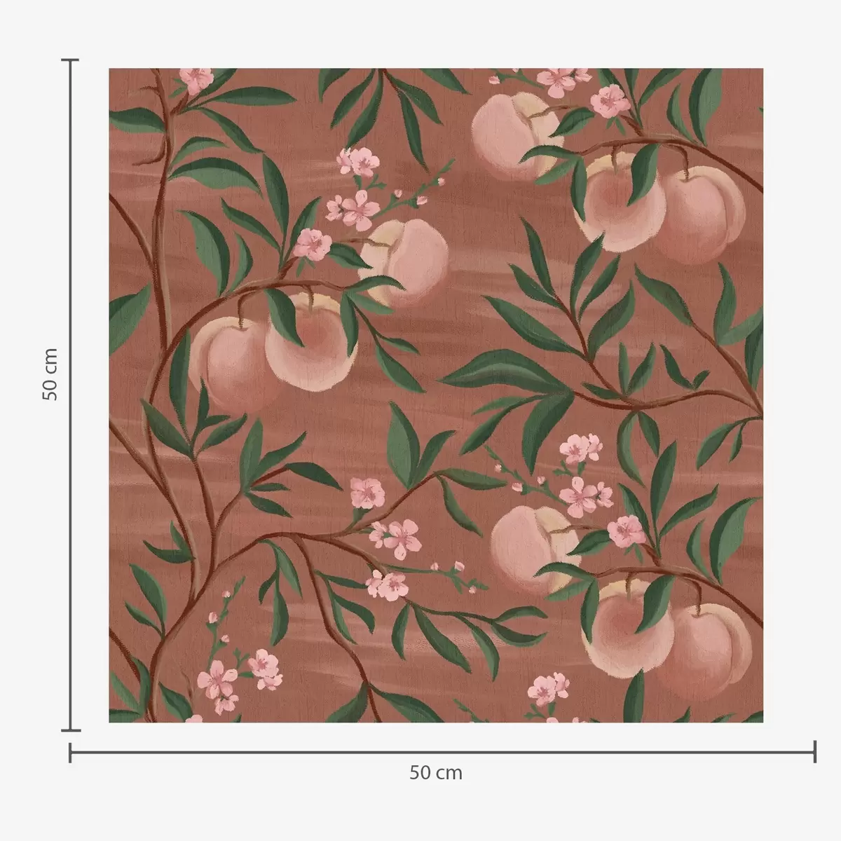 Tapeta Broskve na větvích s růžovými květy, terakotová půda Nr. a00856