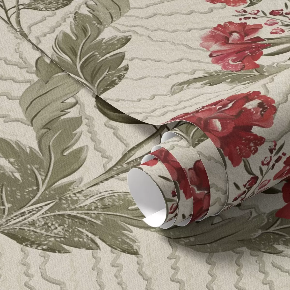 Tapeta Velké červené pivoňky na grafickém pozadí, krémový podklad Nr. a00857