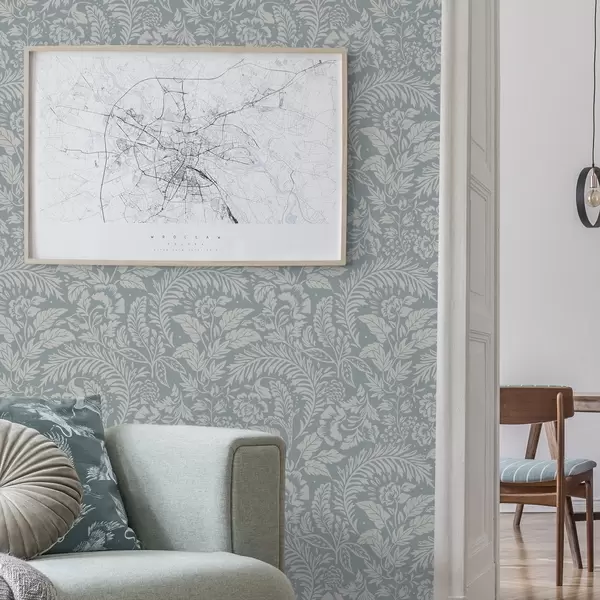 Tapeta Monochromatický květinový vzor na šedo-modrém pozadí Nr. a00859