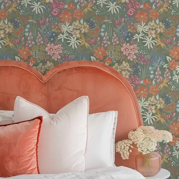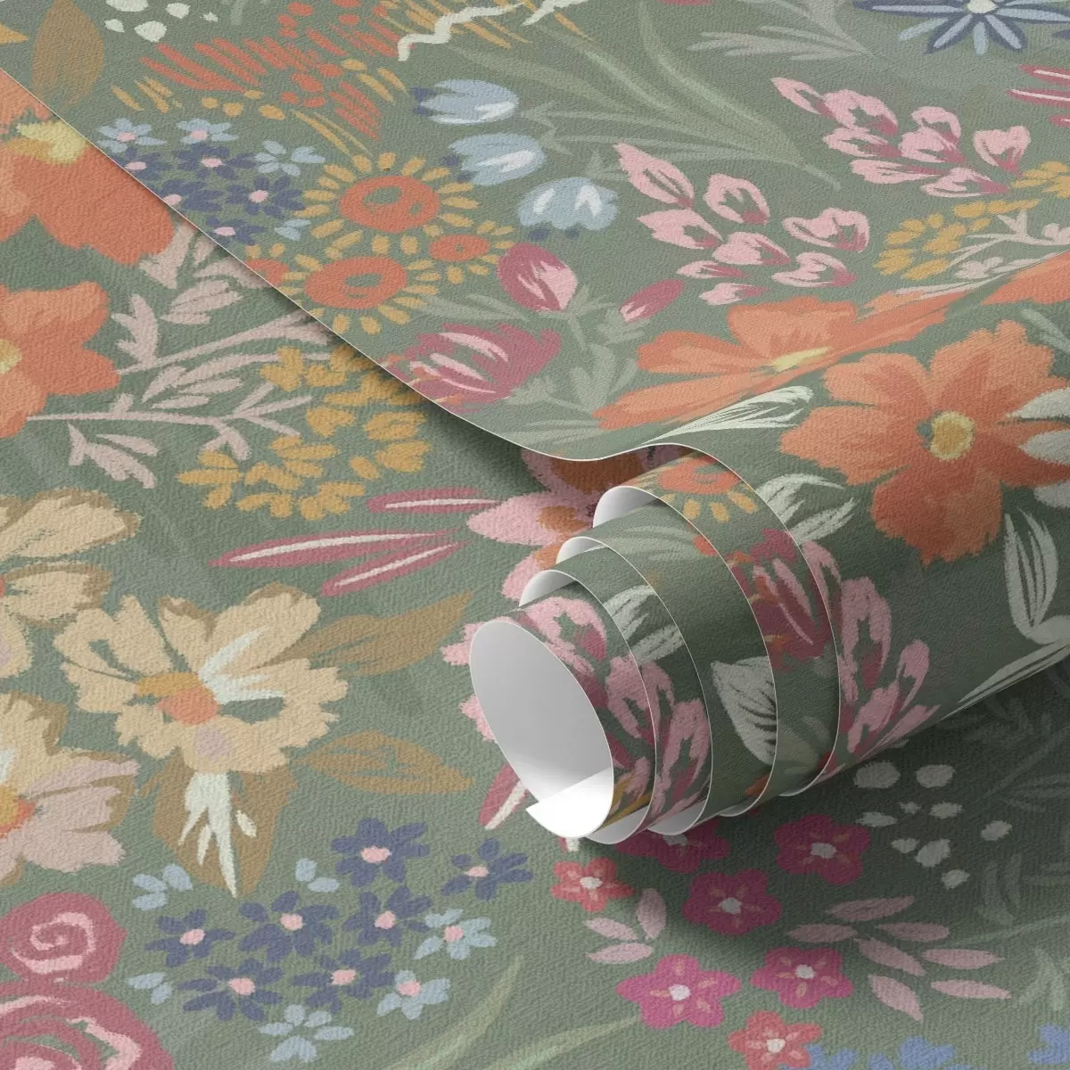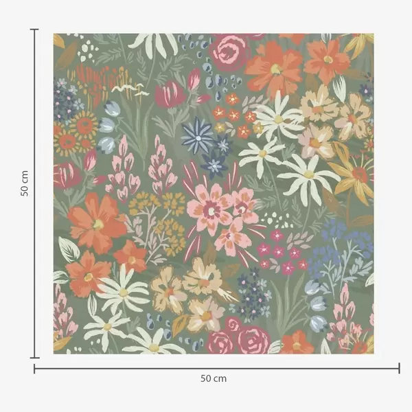Tapeta Malířské luční květiny na šalvějově zeleném pozadí Nr. a00864