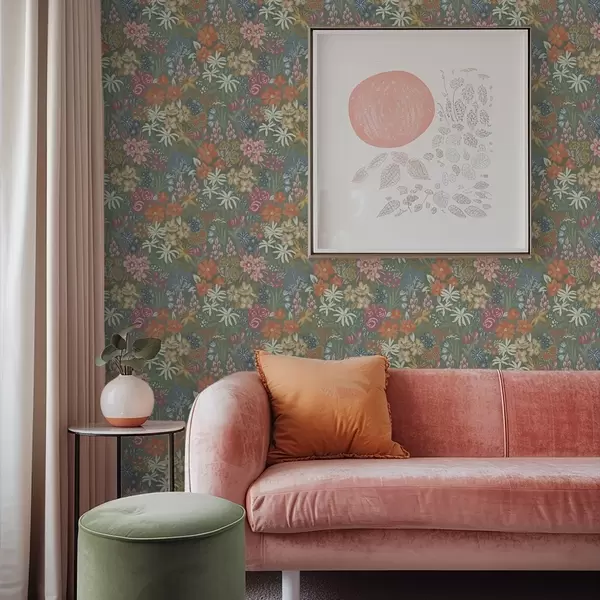 Tapeta Malířské luční květiny na šalvějově zeleném pozadí Nr. a00864