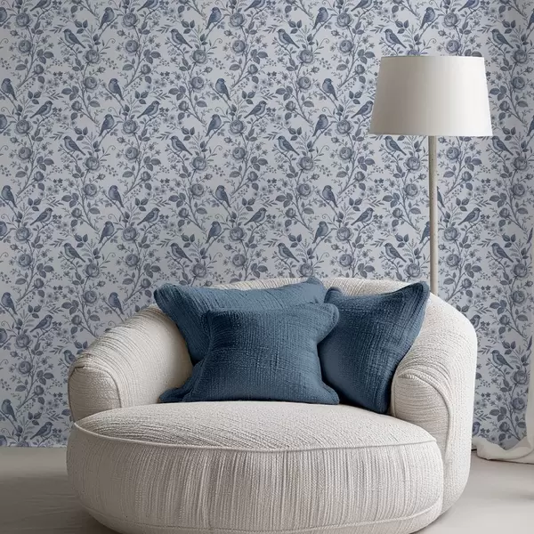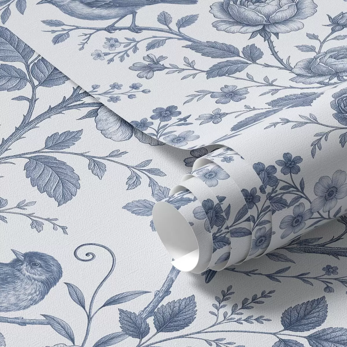 Tapeta Modré ptáky a růže na bílém pozadí Nr. a00873