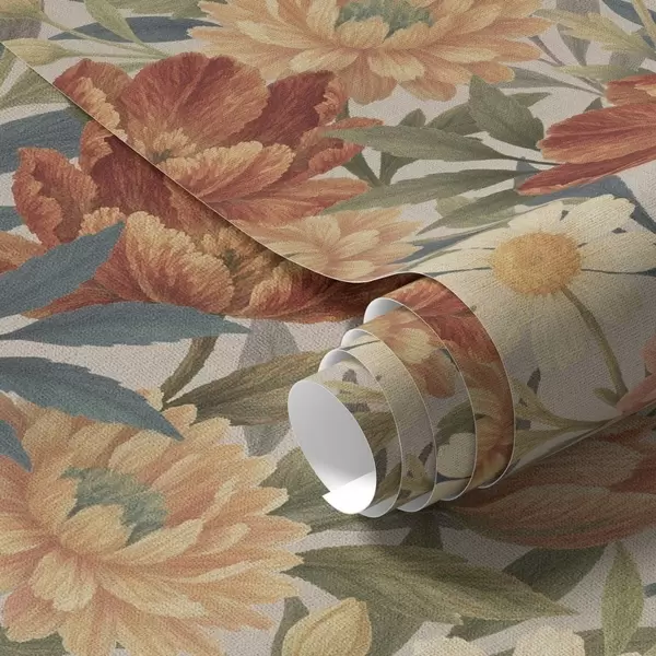 Tapeta Vintage zahrada kvete v teplých terakotových a broskvových barvách Nr. a00874