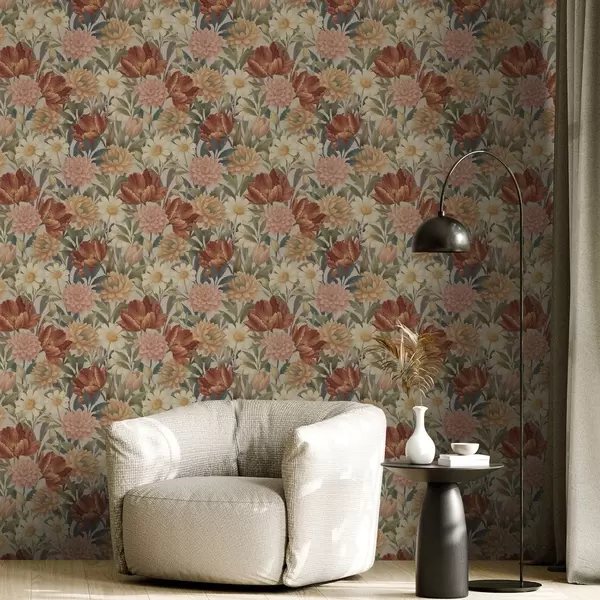 Tapeta Vintage zahrada kvete v teplých terakotových a broskvových barvách Nr. a00874