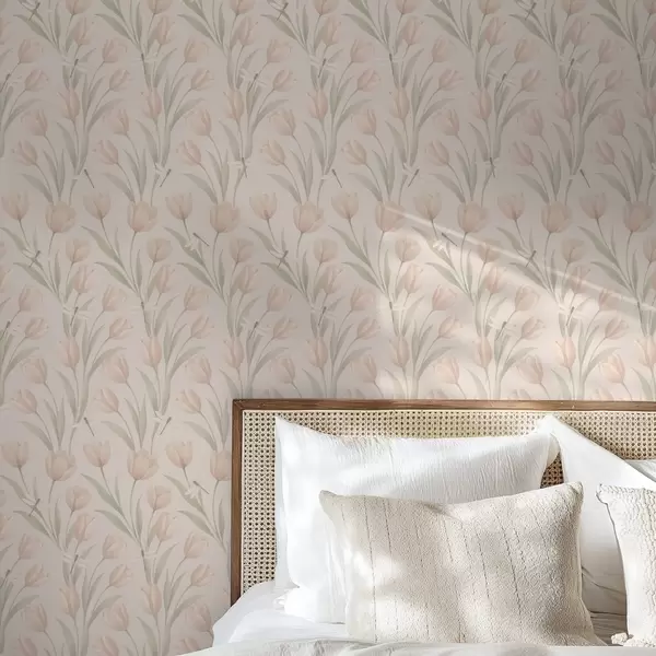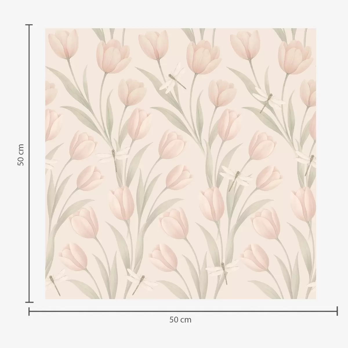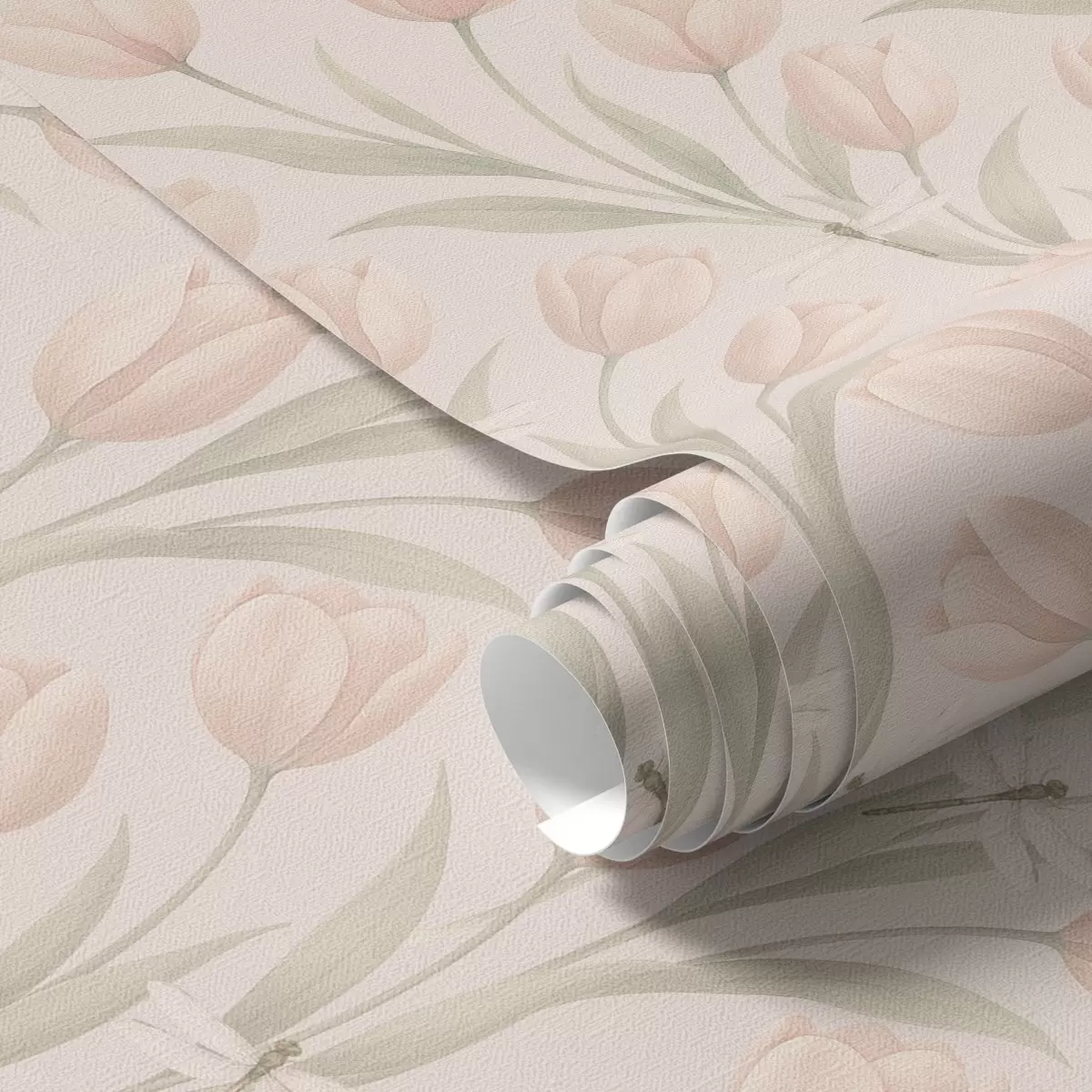Tapeta Pastelové tulipány s vážkami na růžovém pozadí Nr. a00876