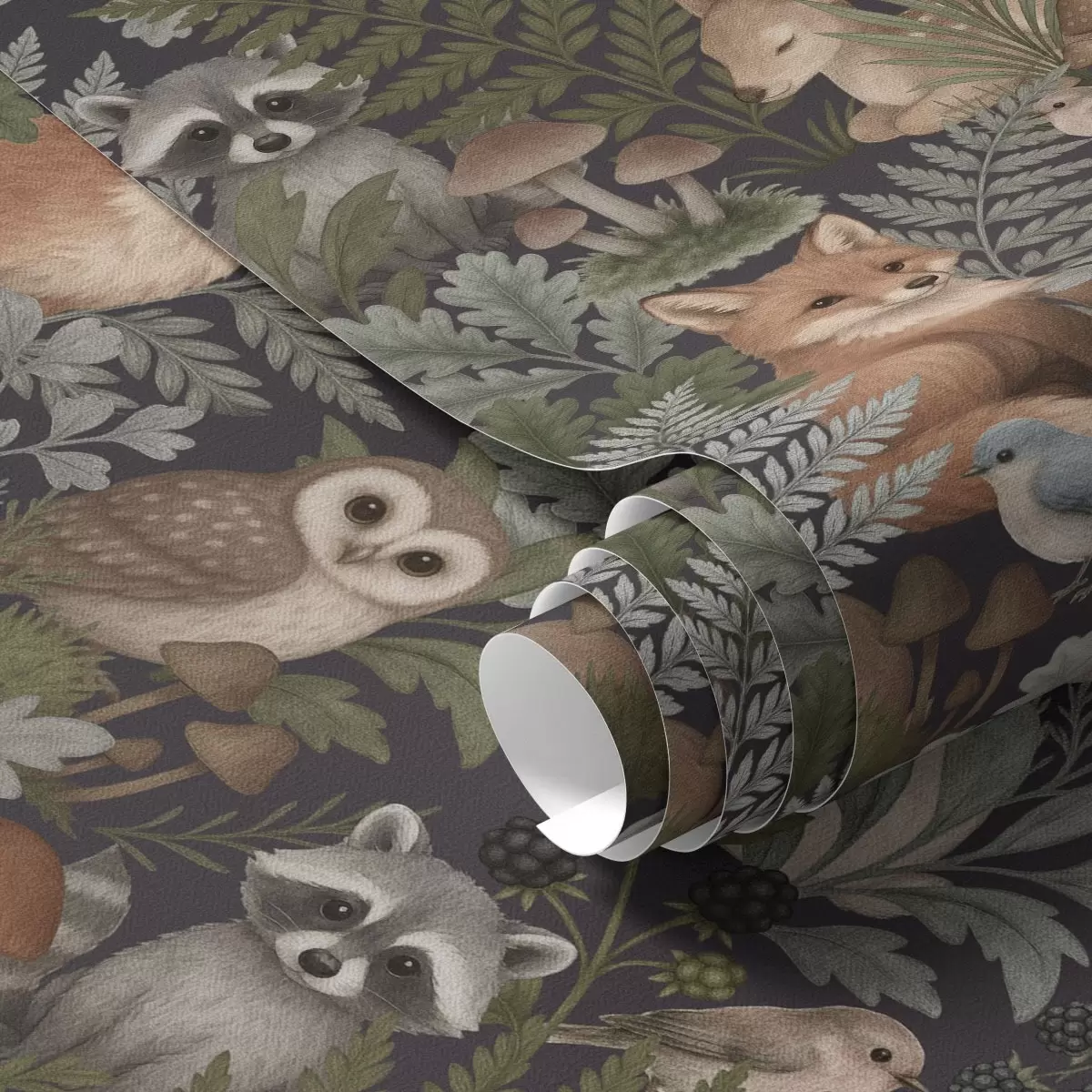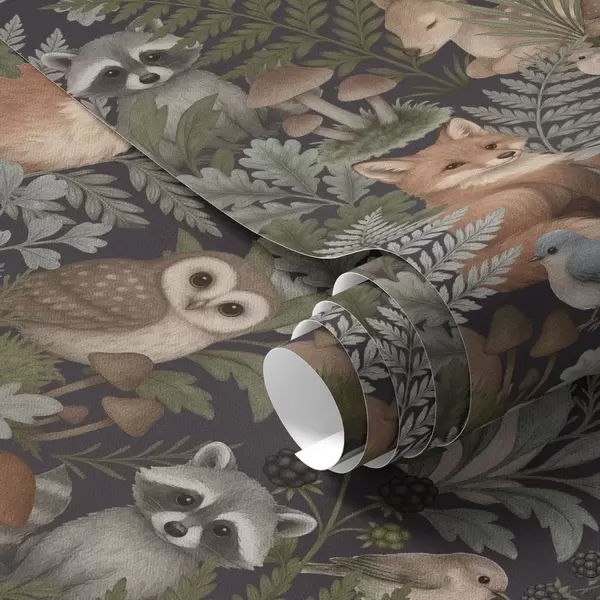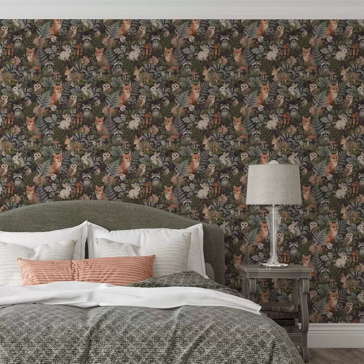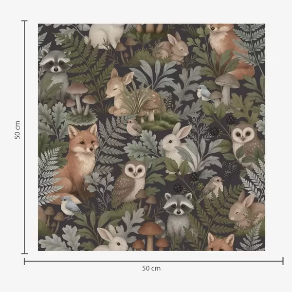 Tapeta Lesní zvířata a kapradiny na tmavém uhlí Nr. a00880