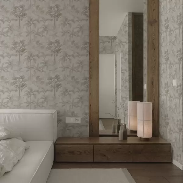 Tapeta Zamlžený palmoví v teplých béžových tónech Nr. a00881