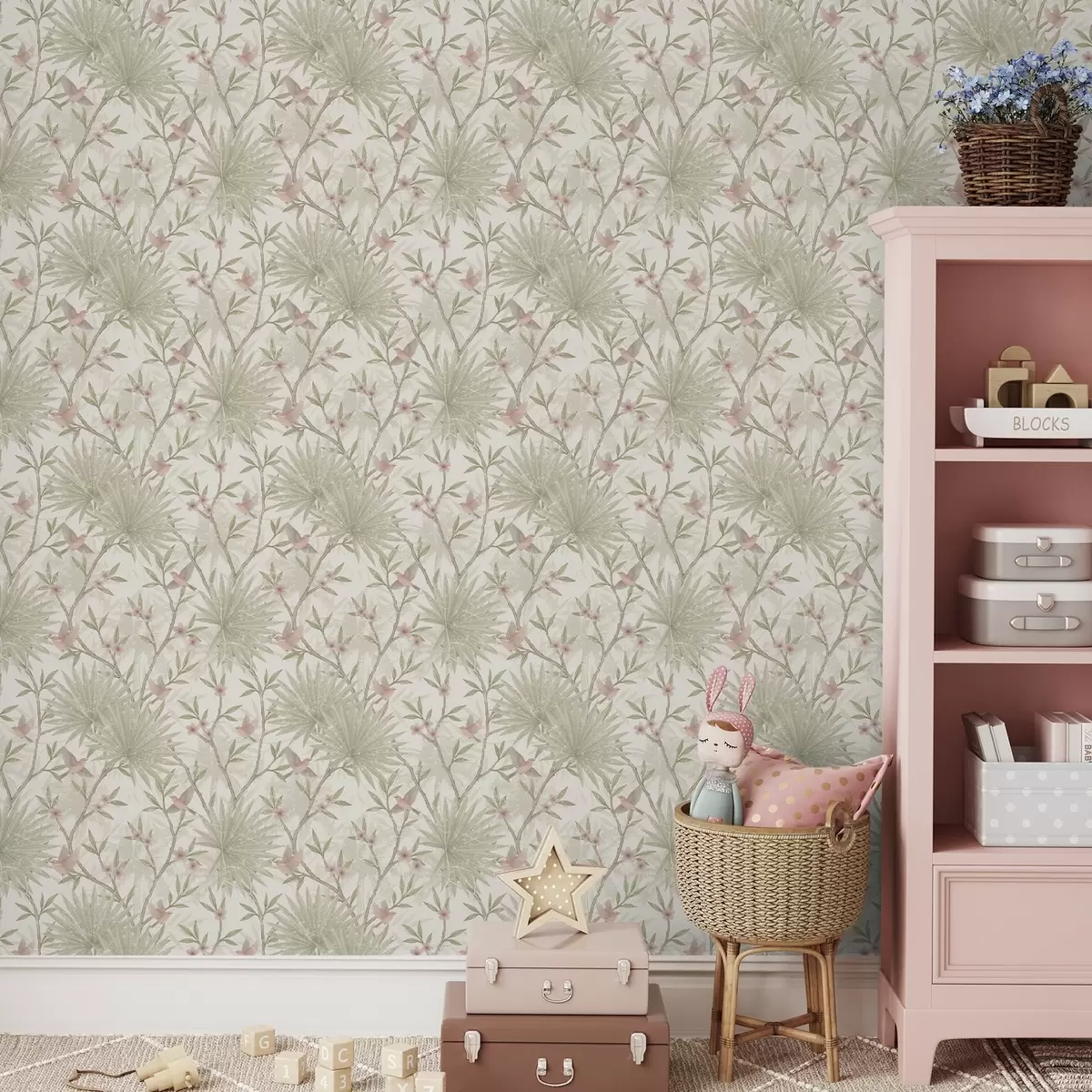 Tapeta Jemní růžoví ptáčci mezi palmovými listy Nr. a00883