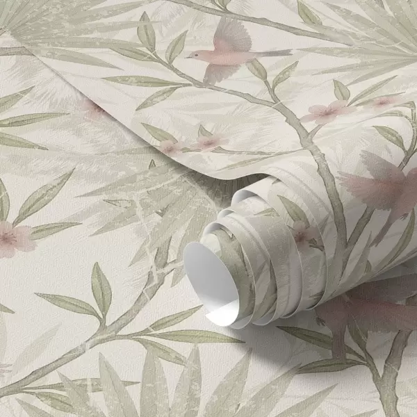 Tapeta Jemní růžoví ptáčci mezi palmovými listy Nr. a00883