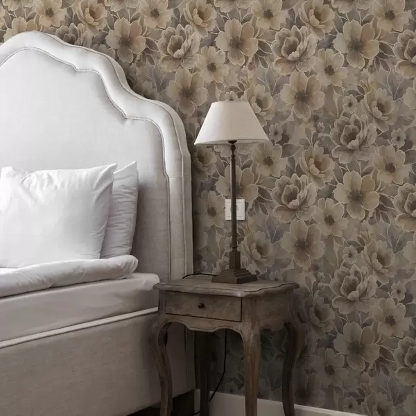 Tapeta Malířské béžové květy na kouřovém abstraktním pozadí Nr. a00884