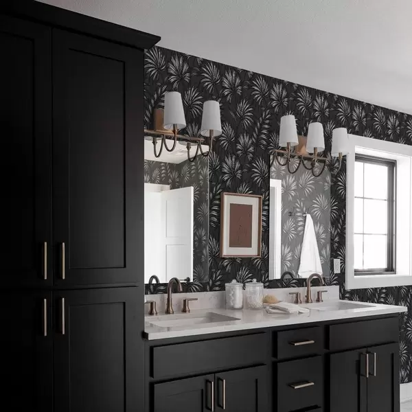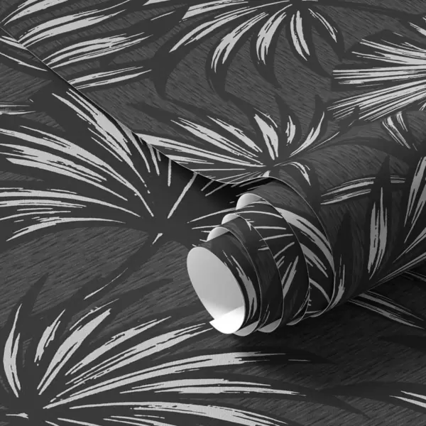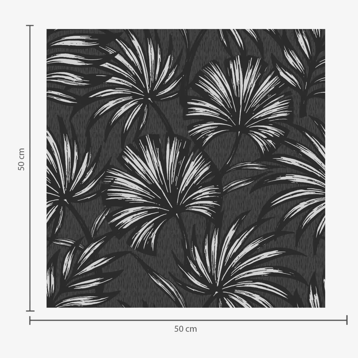 Tapeta Černé a bílé palmové listy na tmavém pozadí Nr. a00891