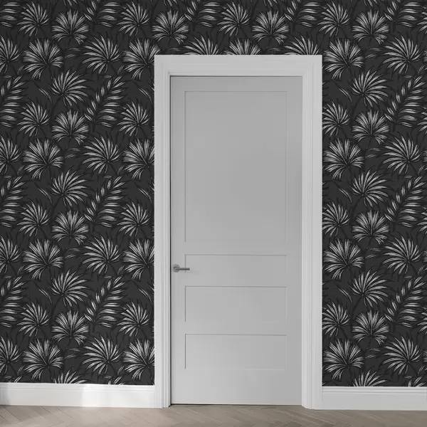 Tapeta Černé a bílé palmové listy na tmavém pozadí Nr. a00891