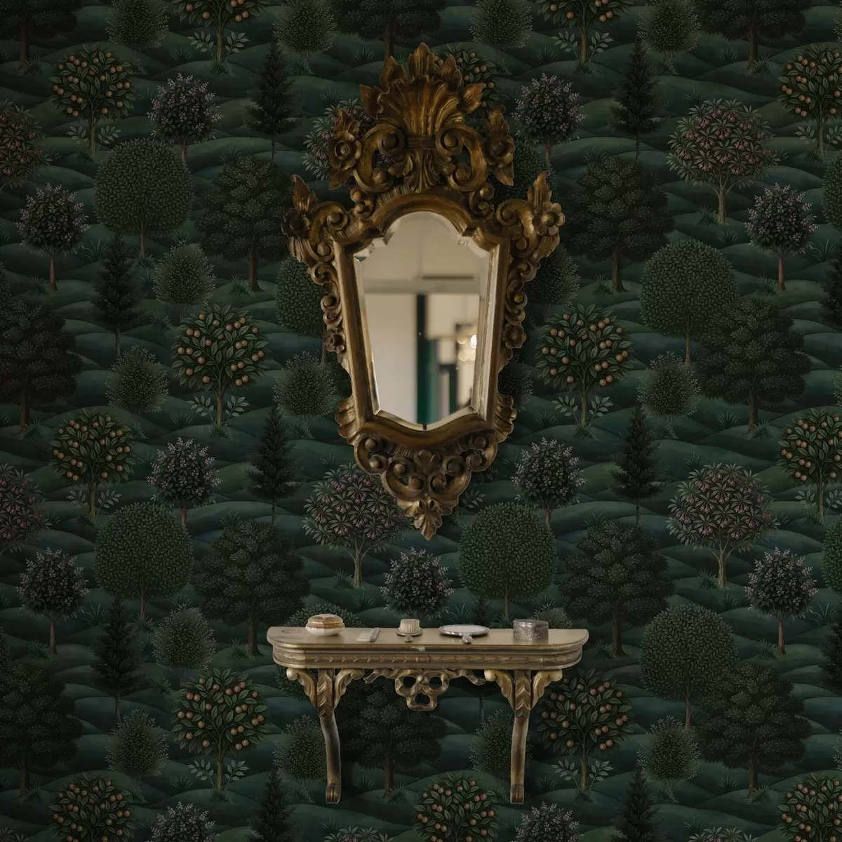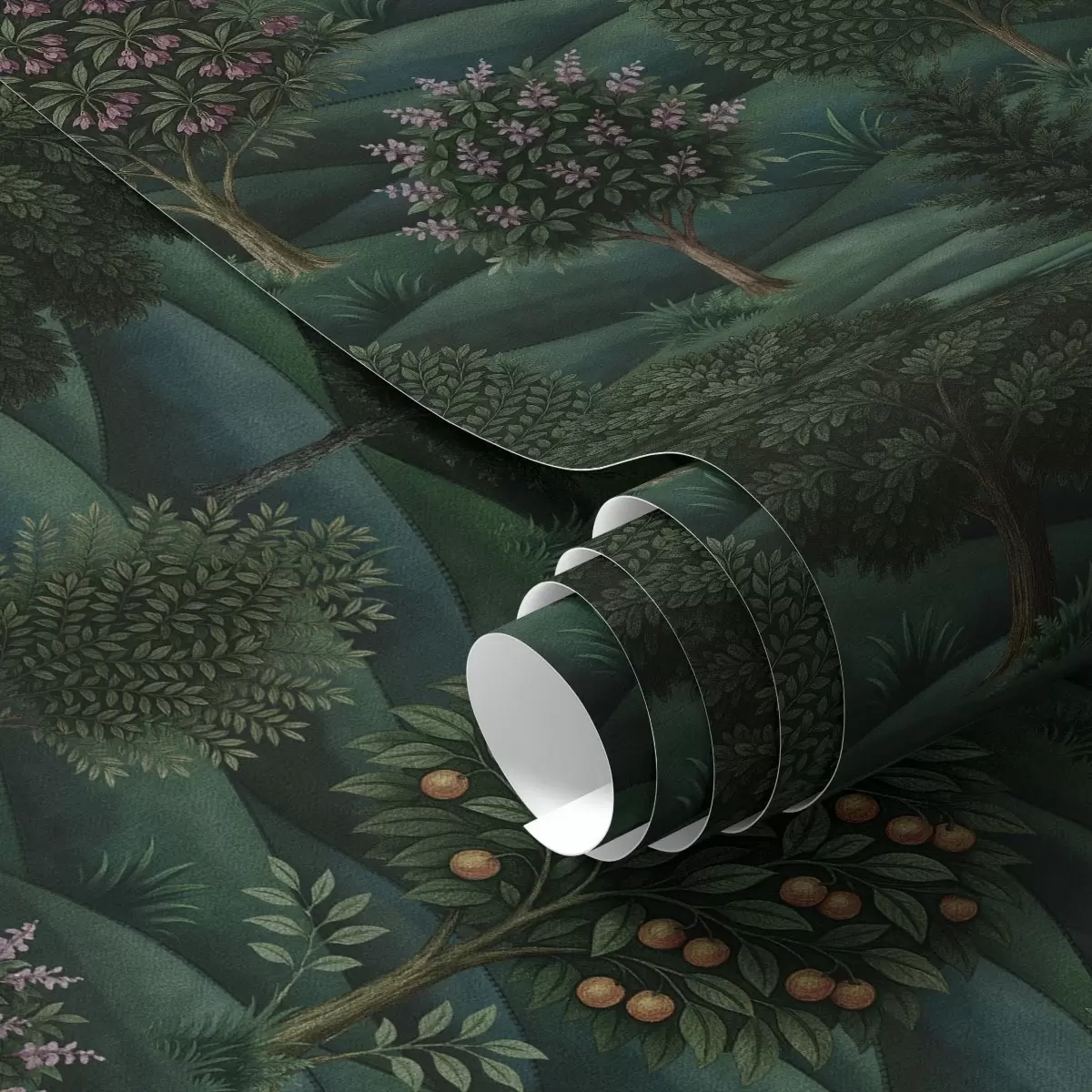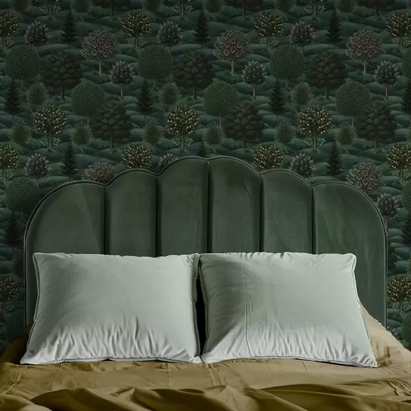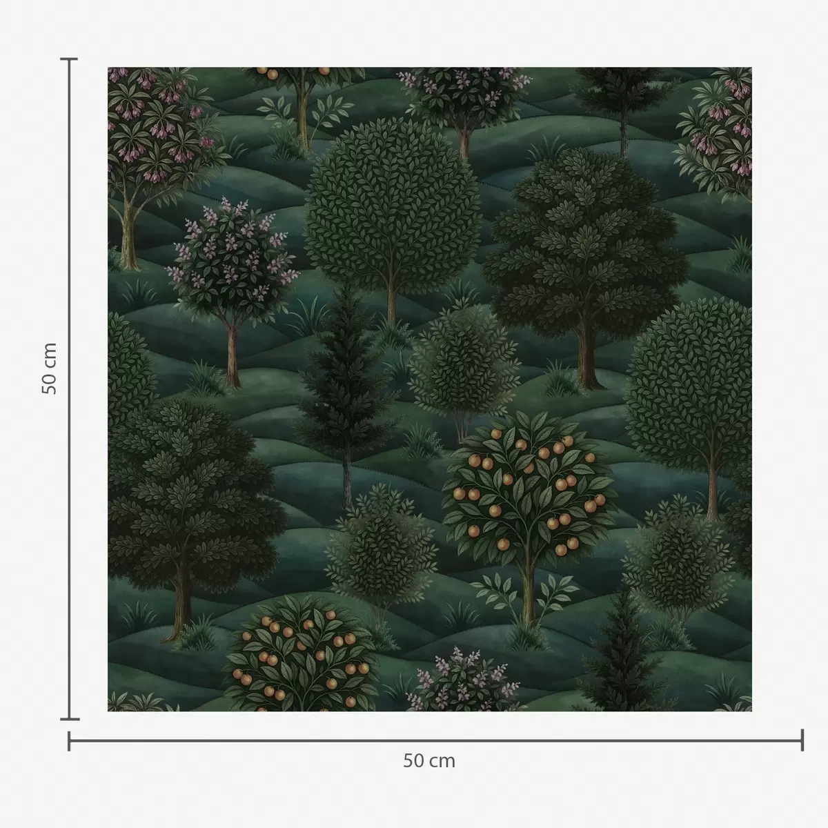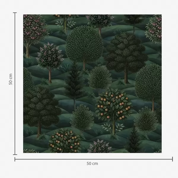 Tapeta Bohatá zelená kopcovitá krajina se vzorovanými stromy Nr. a00892