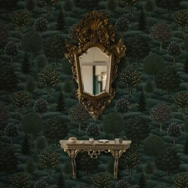 Tapeta Bohatá zelená kopcovitá krajina se vzorovanými stromy Nr. a00892