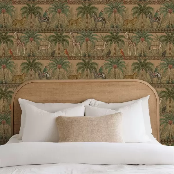 Tapeta Dekorativní savanová zvířata mezi palmami a okraji Nr. a00898