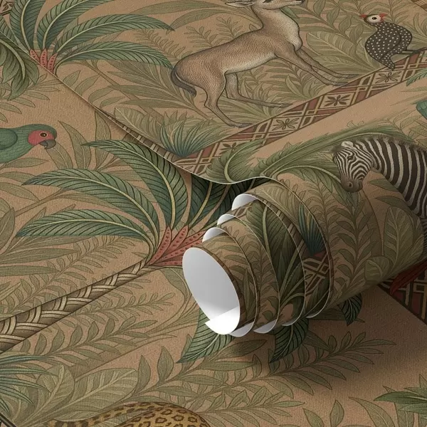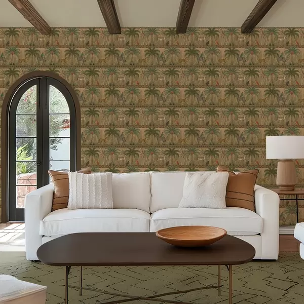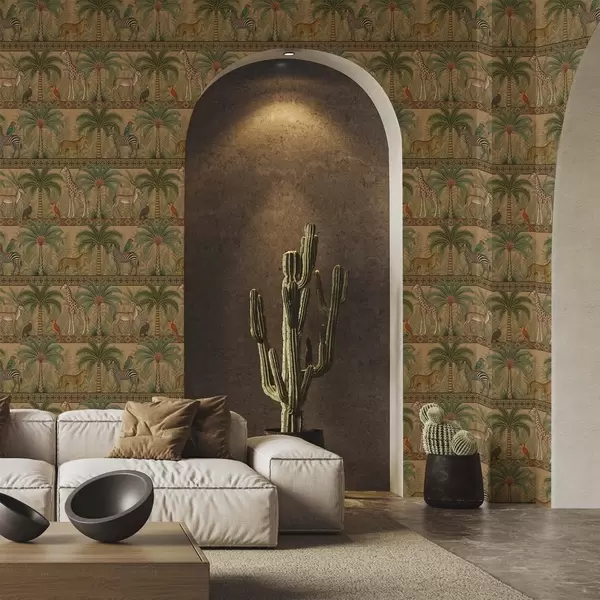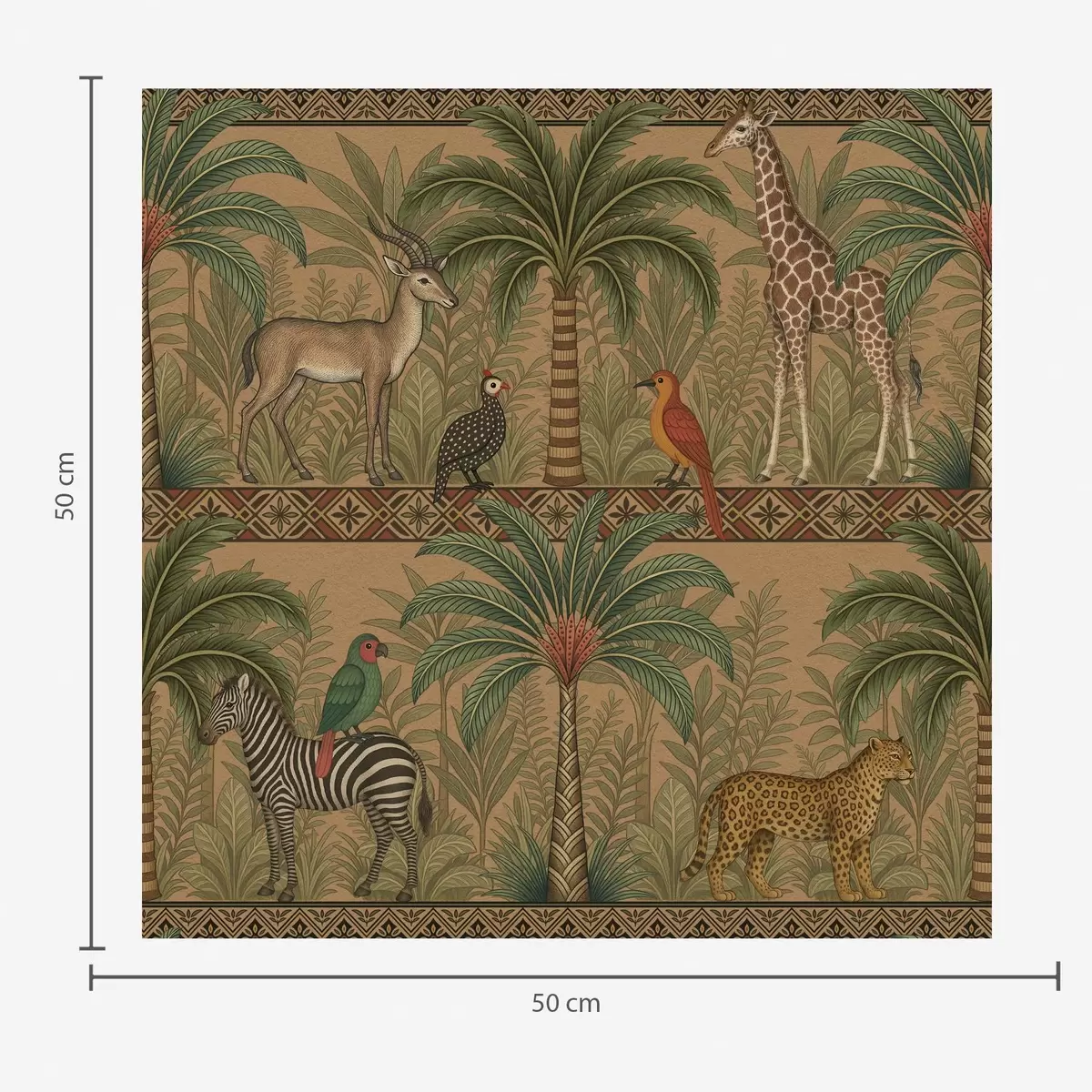 Tapeta Dekorativní savanová zvířata mezi palmami a okraji Nr. a00898