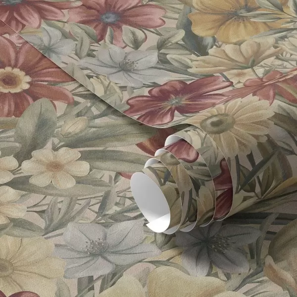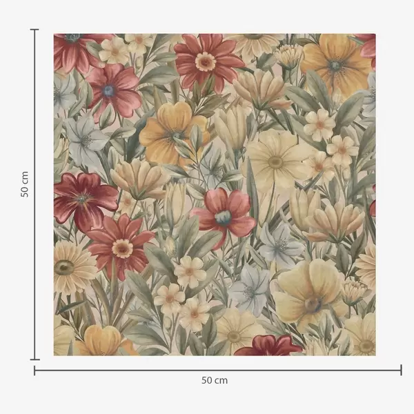 Tapeta Vintage louka kvete v teplých odstínech žluté, červené a šalvějové barvy. Nr. a00906