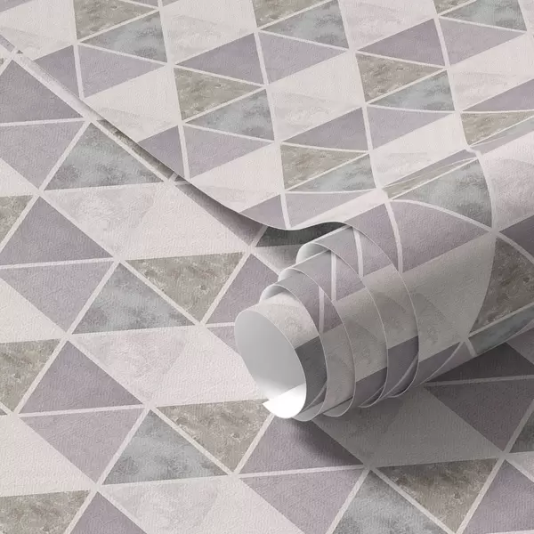Tapeta Trojúhelníky s texturovanými vložkami, směs lila a šedé barvy Nr. a00917