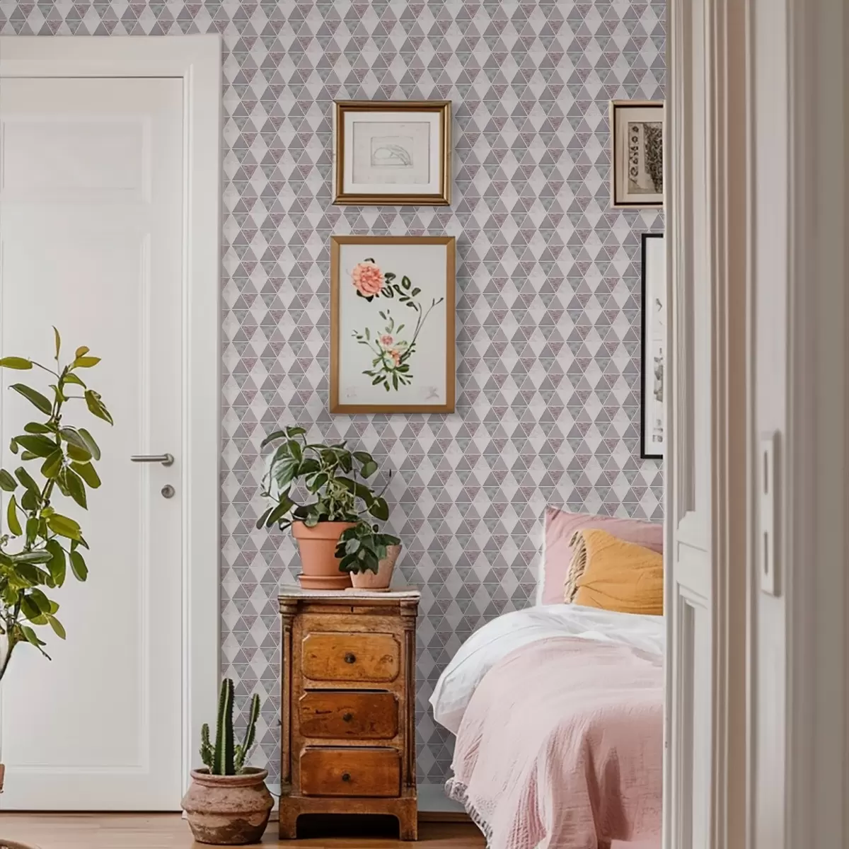 Tapeta Měkké trojúhelníky v šedo-růžových a pudrových tónech Nr. a00918