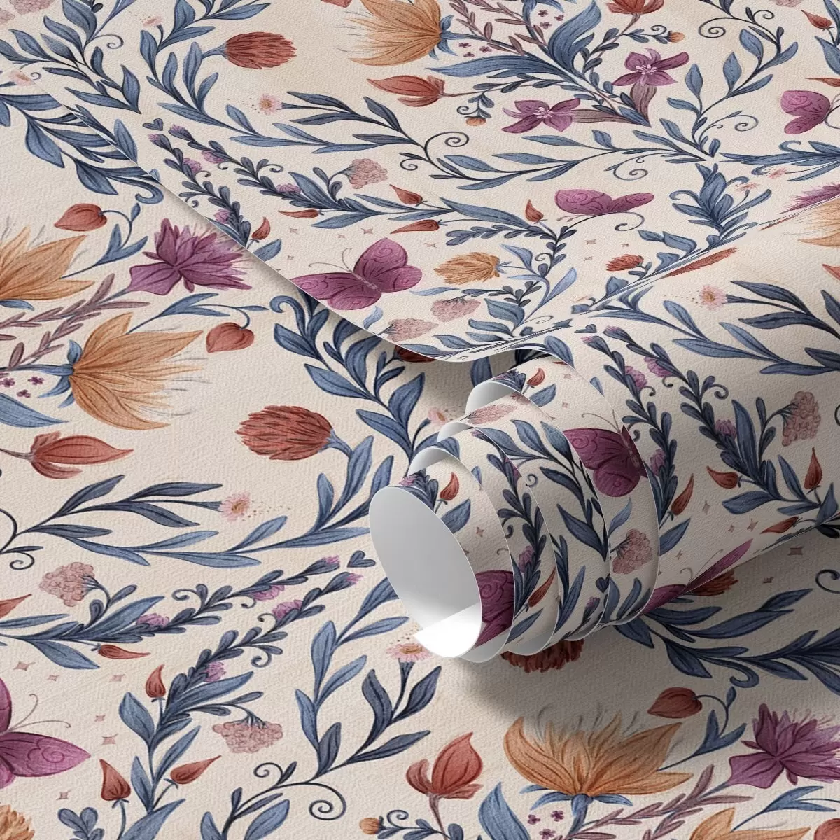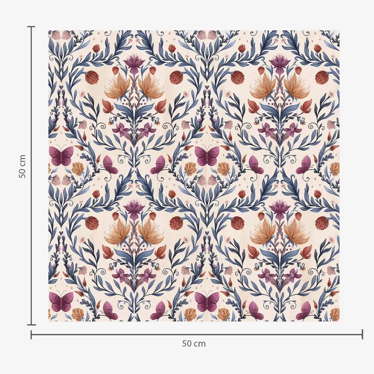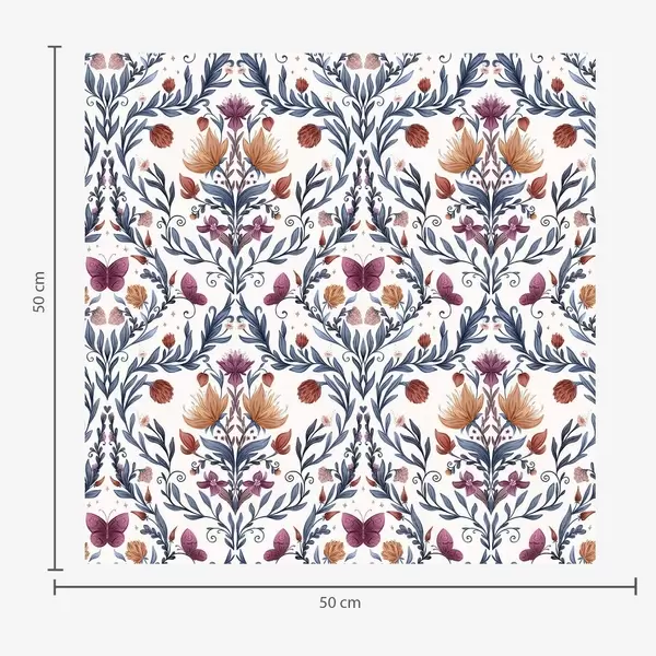 Tapeta Květinový damašek s motýly na jemně broskvovém pozadí Nr. a00926
