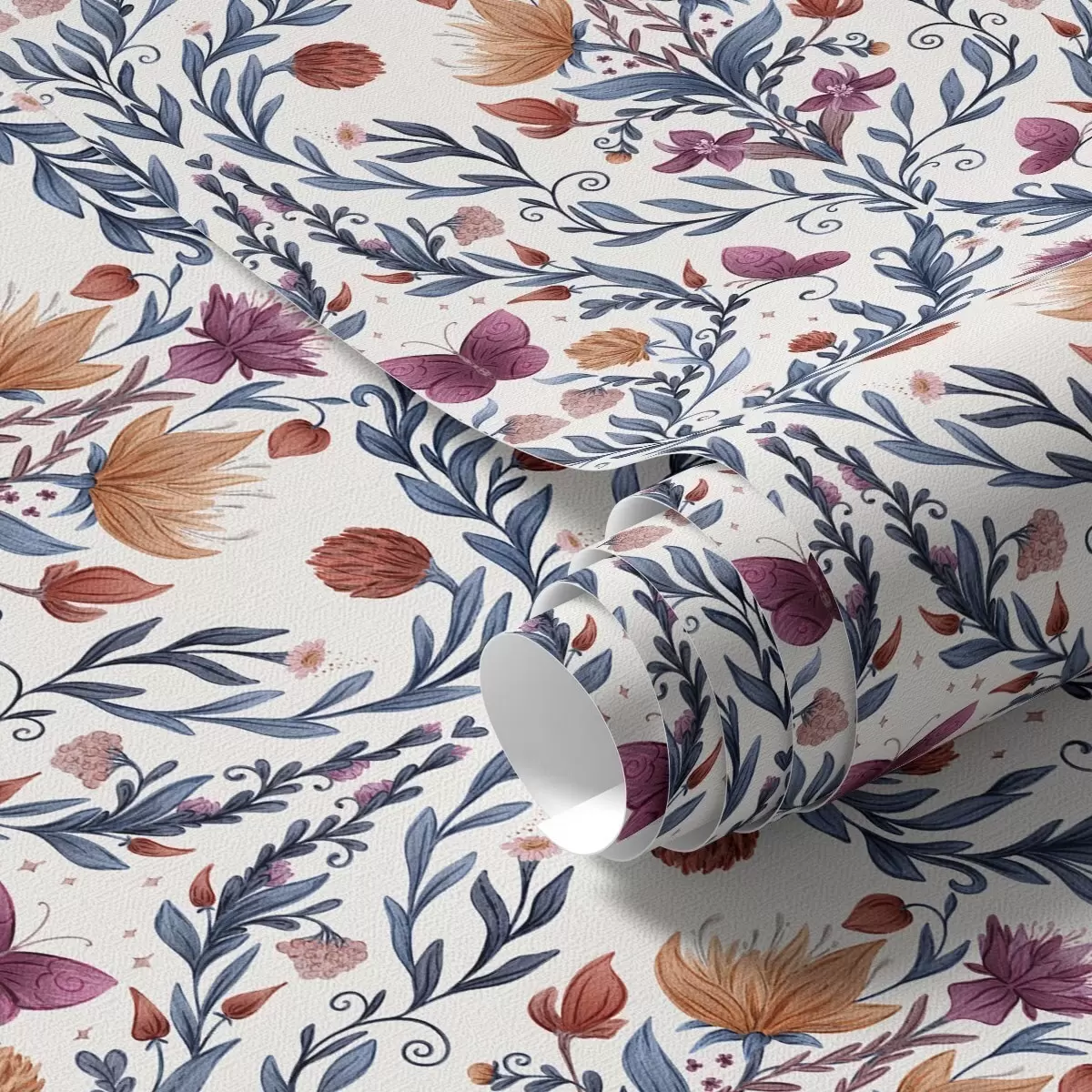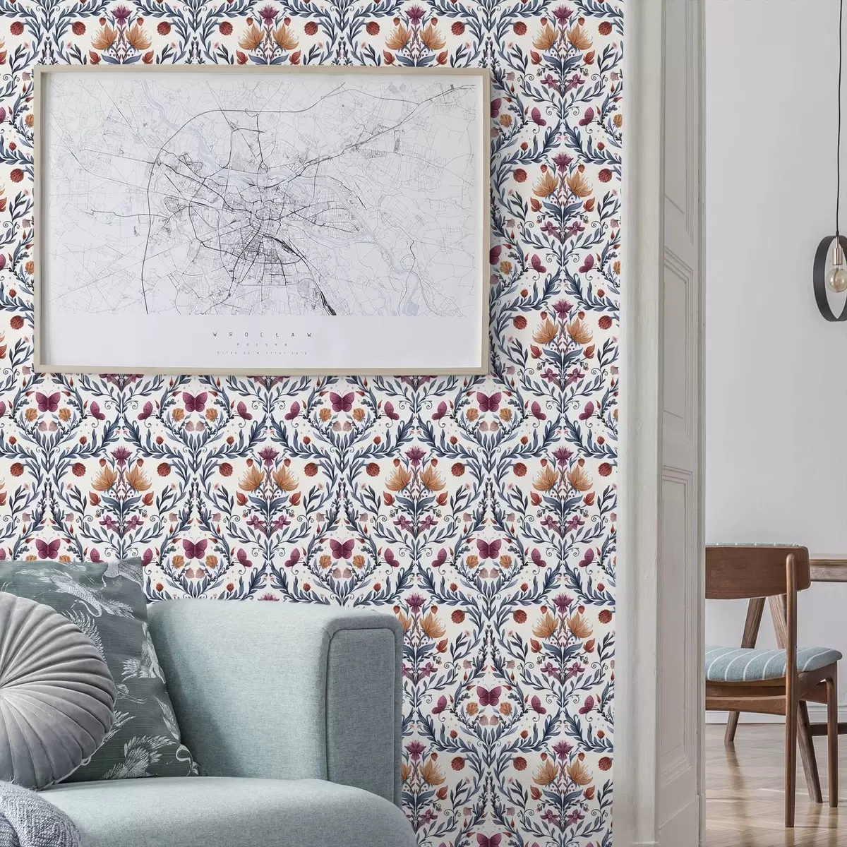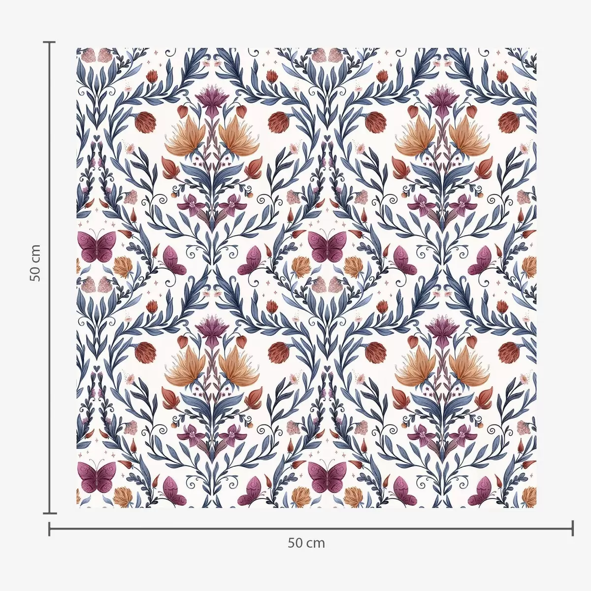 Tapeta Květinový damašek s motýly na teplé krémové barvě Nr. a00926v2
