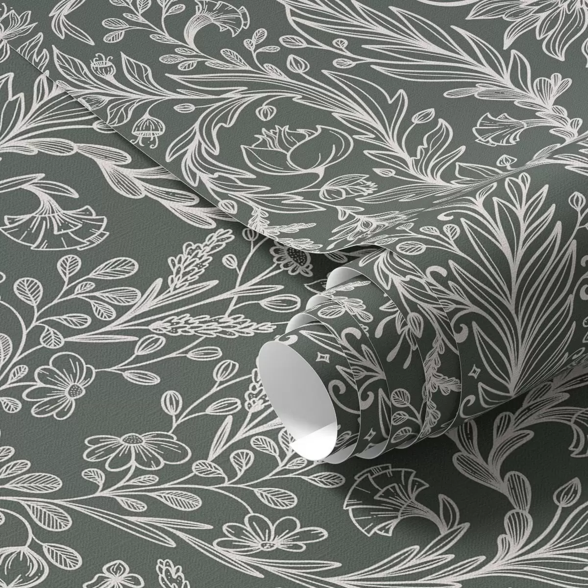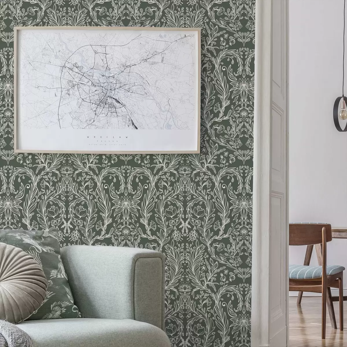 Tapeta Lineární květinový vzor na tmavě zeleném pozadí Nr. a00929