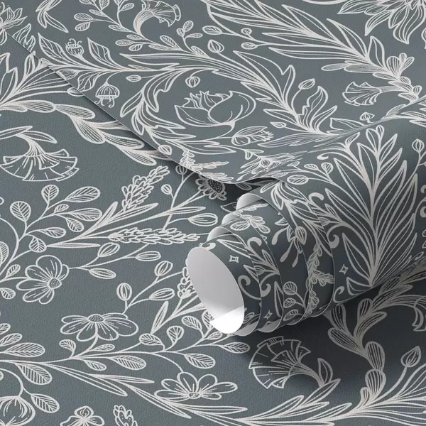 Tapeta Lineární květinový ornament na modrošedém pozadí Nr. a00929v1