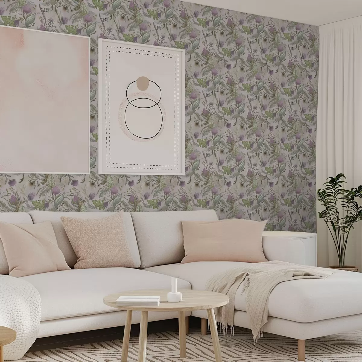 Tapeta Divoké květy šeříku a listy na práškovém pozadí Nr. a00930v3