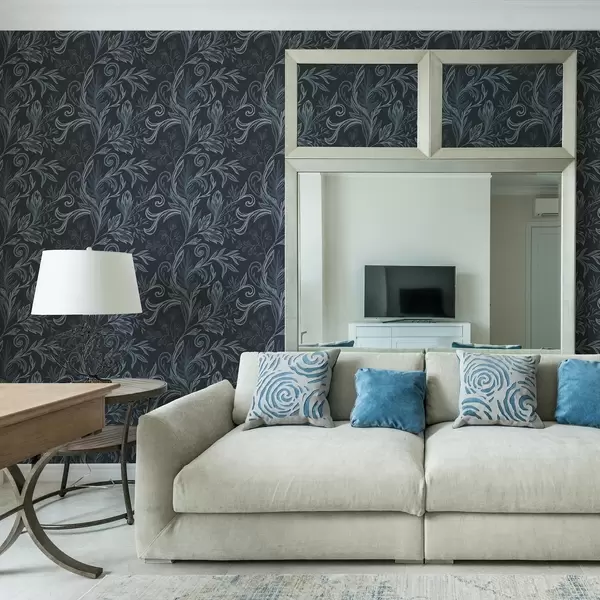 Tapeta Tmavě indigové zvlněné listy s ručně kresleným stínováním Nr. a00935