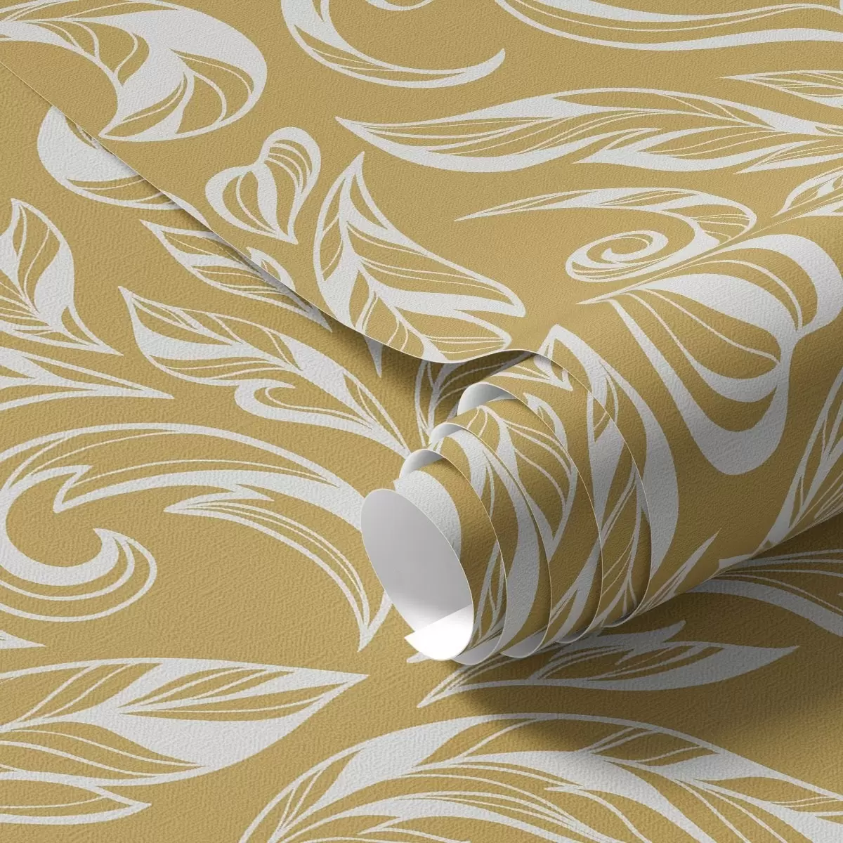 Tapeta Krémově bílý listový ornament na teplém okrovém pozadí Nr. a00940v1