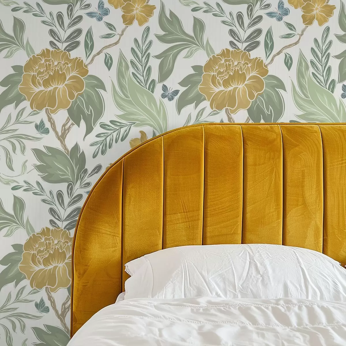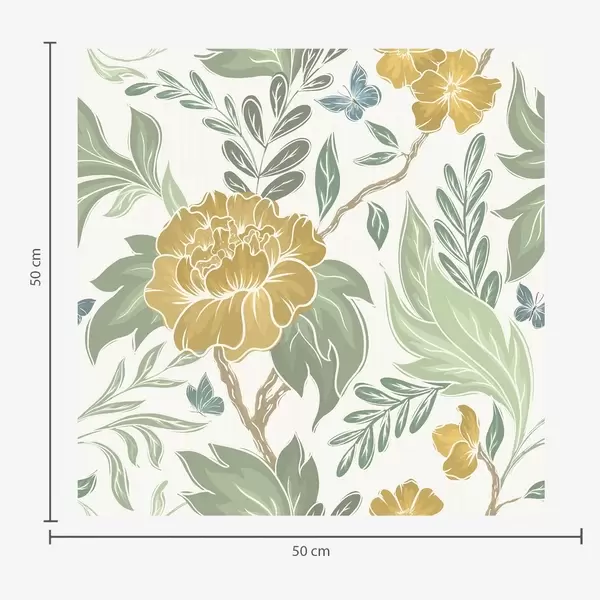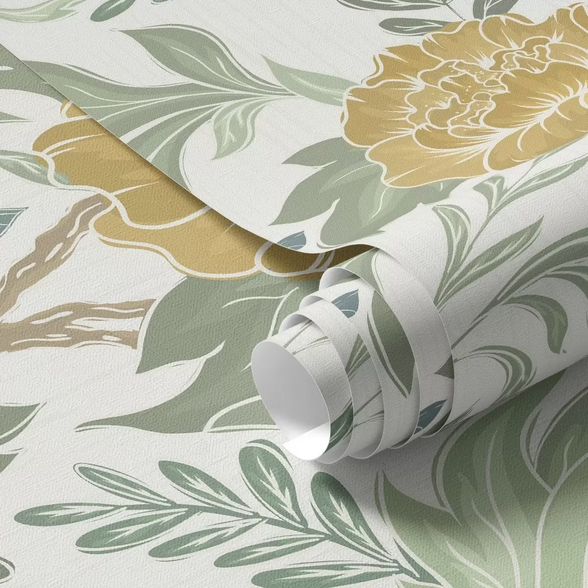 Tapeta Velké žluté pivoňky a zeleň na světlém pozadí Nr. a00941