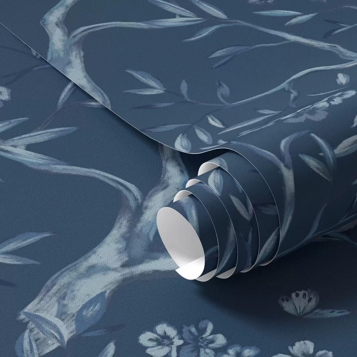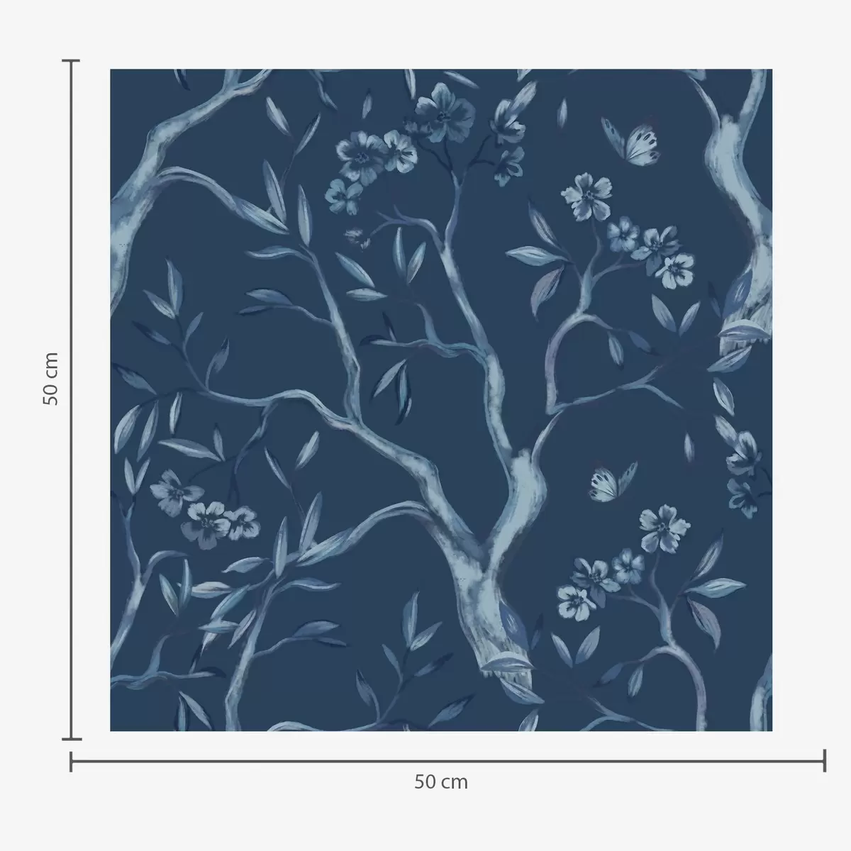 Tapeta Modré kvetoucí větve s motýly na tmavém pozadí Nr. a00951v1