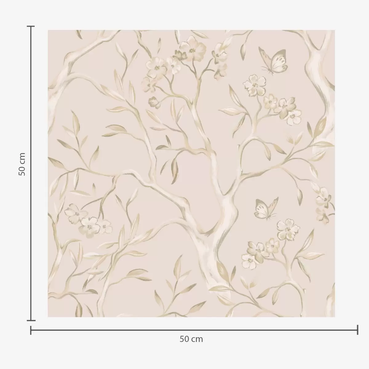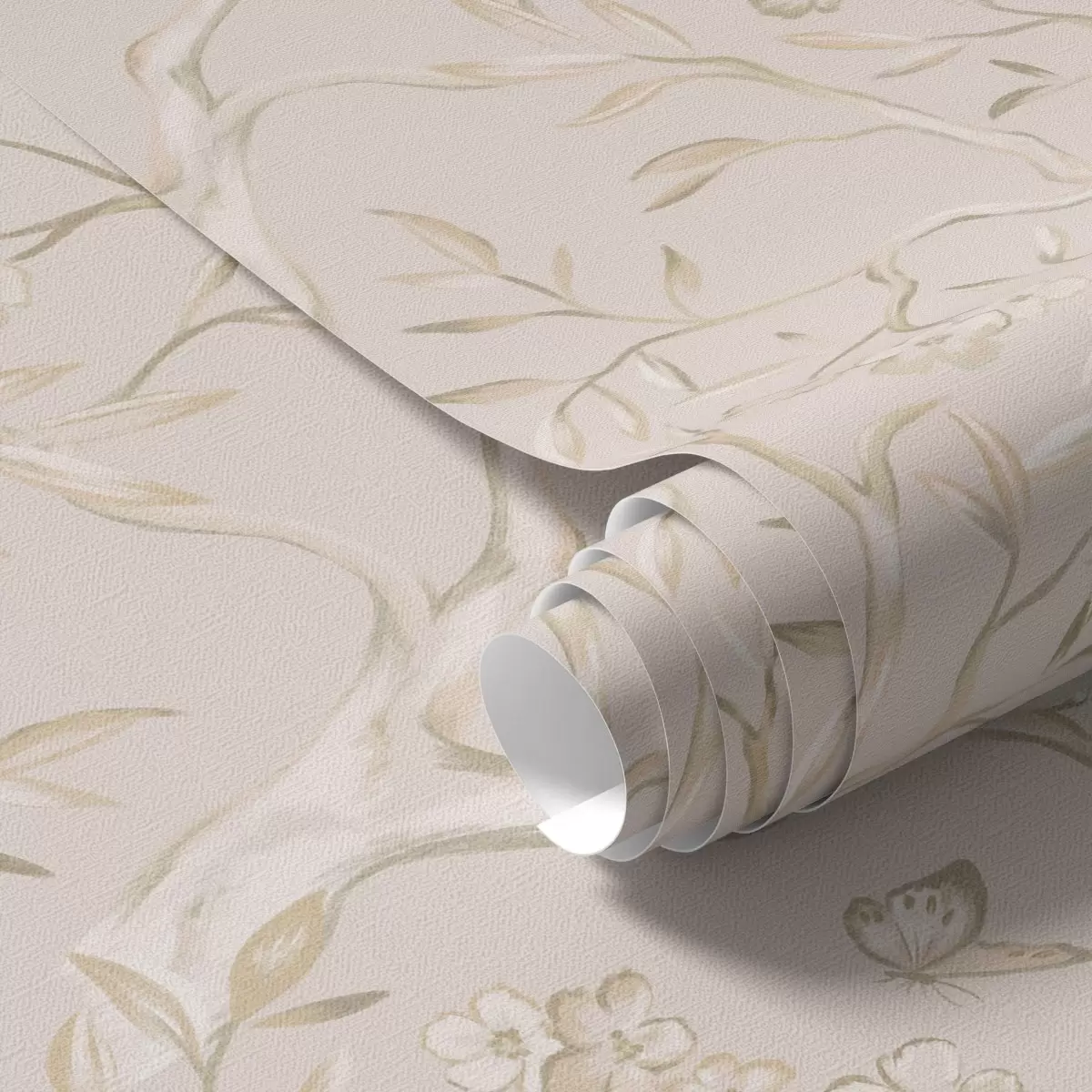 Tapeta Béžové kvetoucí větve s motýly na jemném pozadí Nr. a00951v2