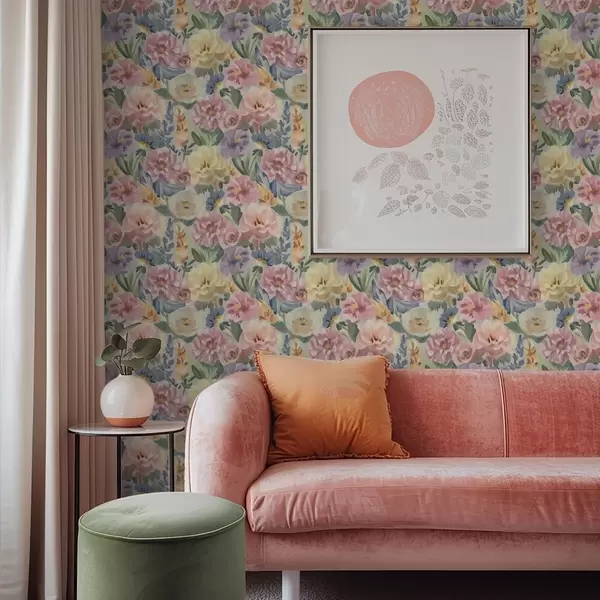 Tapeta Pastelové rozmazané květy štětcem, jemná barevná paleta Nr. a00954
