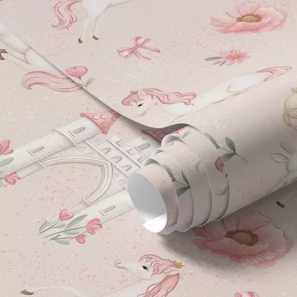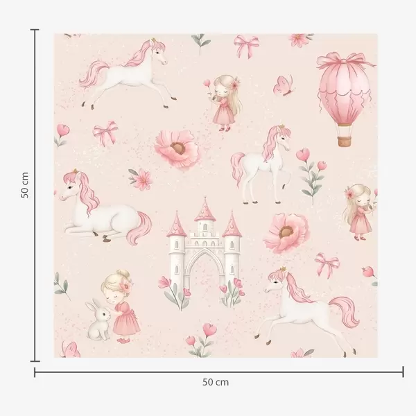 Tapeta Růžové jednorožce, malé holčičky a hrad na jemném pozadí Nr. a00957