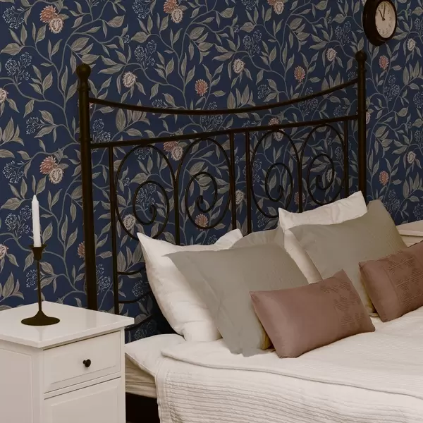 Tapeta Modrá zahrada s větvemi, plody a drobnými květy Nr. a00959